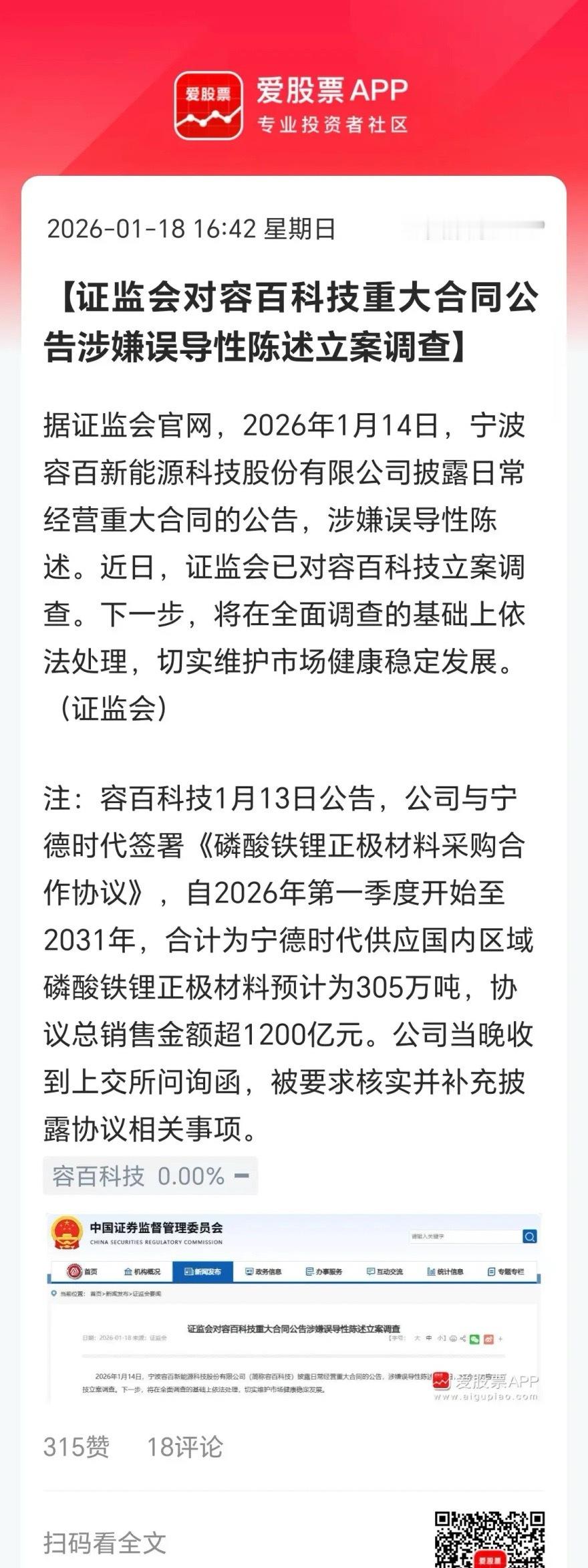 容百科技前几天跟宁德时代签了大合同,1200亿,震惊了整个市场!很快遭上交所火速问询,今天又因为涉嫌误导被证监会立案调查。所以,这千亿订单到底有没有?可能是吹牛逼了,动不动就千亿,你咋不上万亿呢。总之,上市公司要老老实实做实体,不允许蹭题材。公告不能夸大,不然可能吃不了兜着走。容百科技的4万股东懵逼了,本来等着复牌数涨停板,现在感觉不跌就不错,这心情过了一趟巨大的山车啊!
