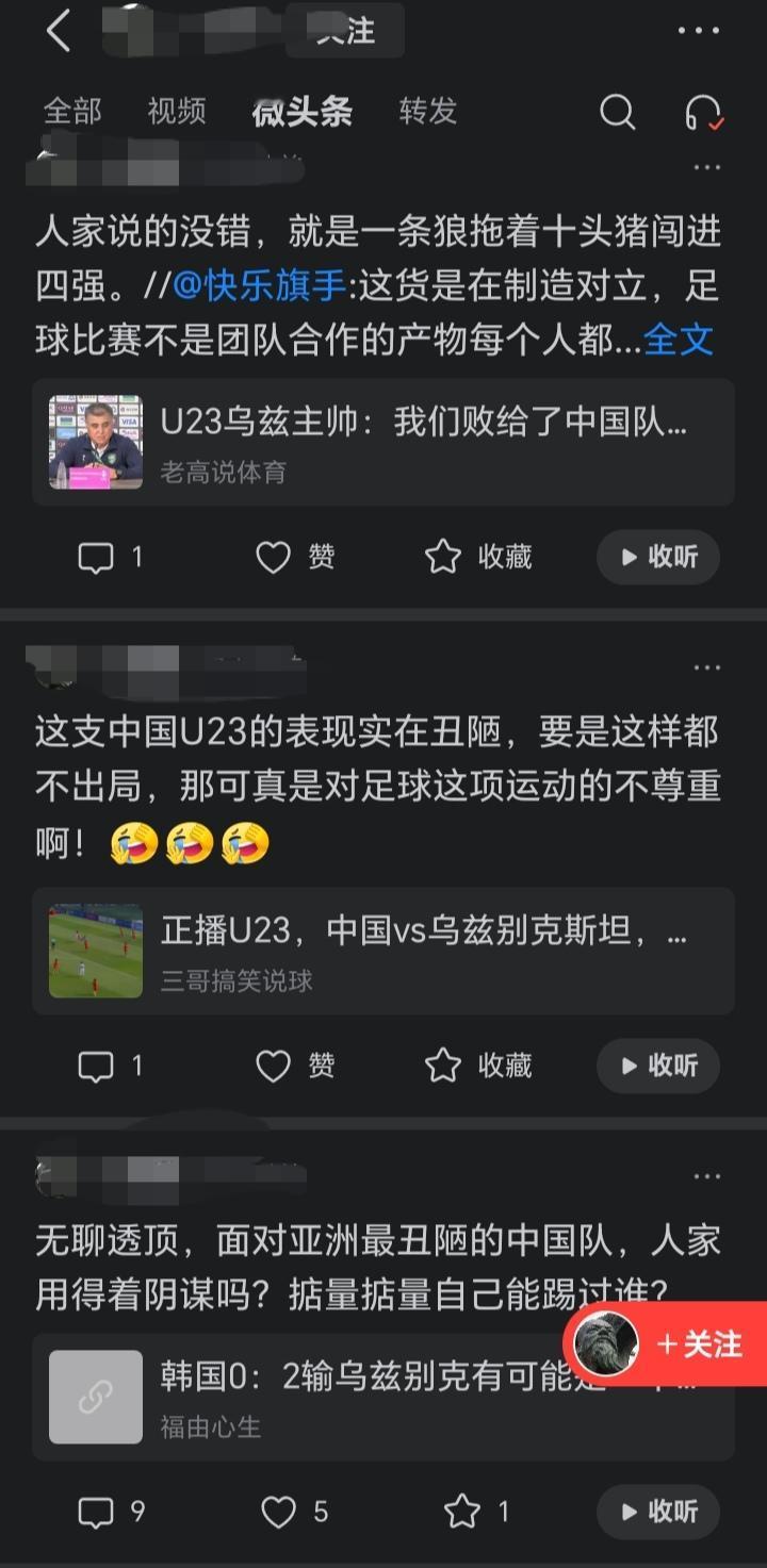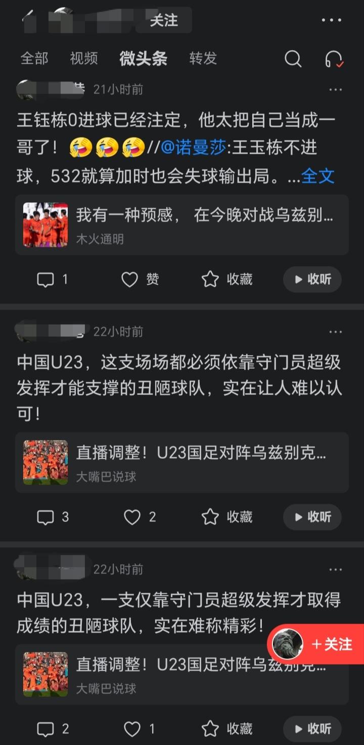 处心积虑,废寝忘食的黑国足,一天十几条,条条骂丑陋,骂球员是猪,骂王钰栋0进球。真不知道它自己是什么种族,国足赢个球它如丧考妣,不对,它可能没有考妣,有些球迷是输了骂,但是赢了人家也是真夸,就是不知道图中这种东西是什么货色,输赢都骂。