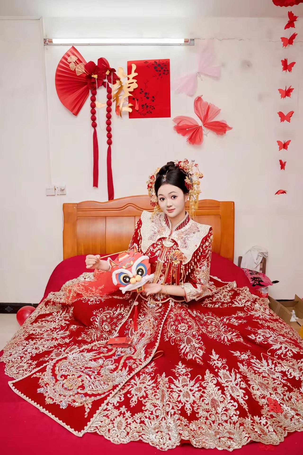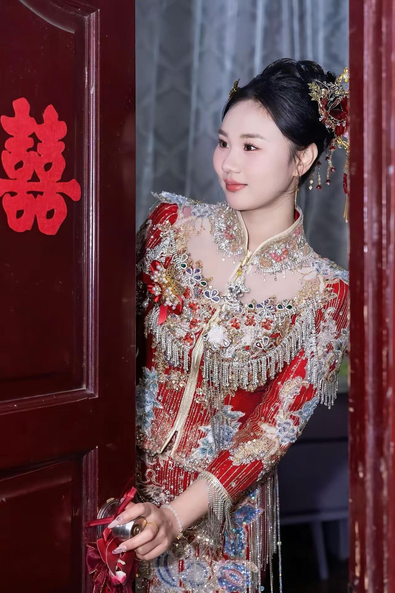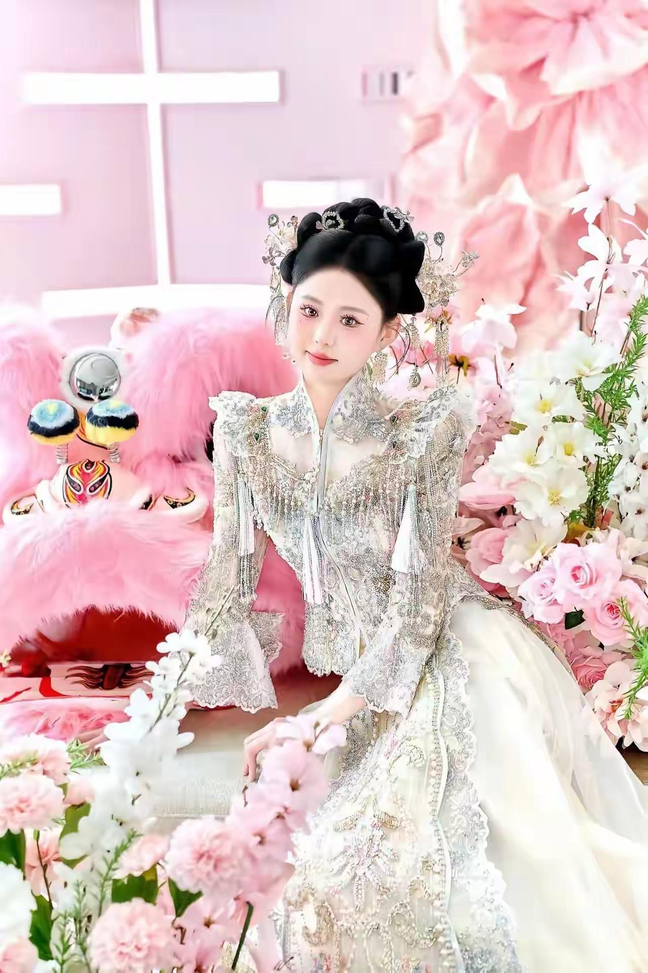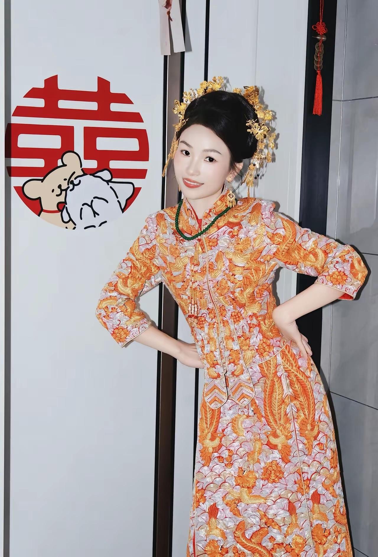 谁能想到粉蕾丝鱼尾裙与柿子树的同框会这么惊艳?木质调的室内空间里,女神身着粉色蕾