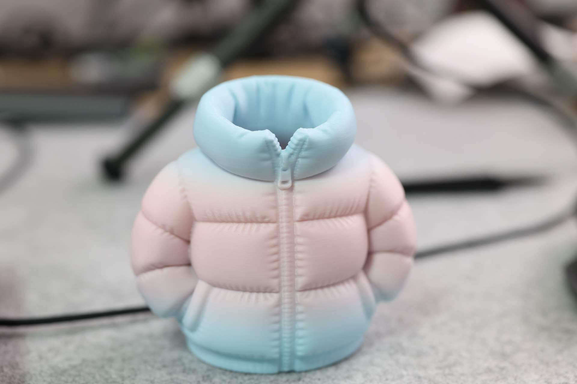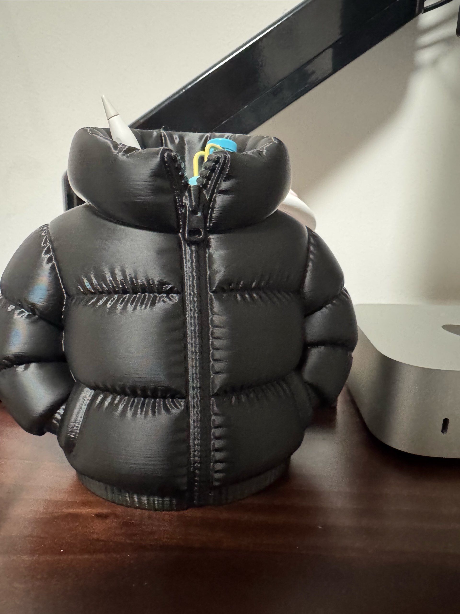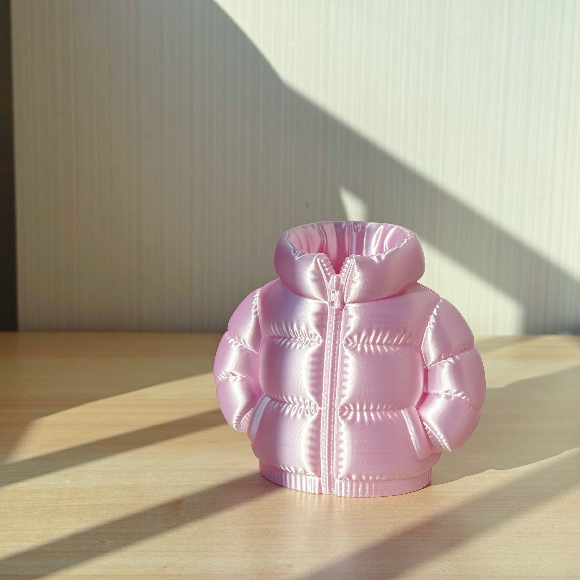 有没有喜欢这个羽绒服笔筒的,也是牙刷桶,小花盆。成本8块钱,带裤子的9块,可以免费加名字,商标。颜色可以选丝绸白,丝绸黑,丝绸银,丝绸绿,蓝绿渐变色。其他颜色可以3个起定做,年前大概最后一波补货了。模型由汤圆加可乐开源,图片来自网络。