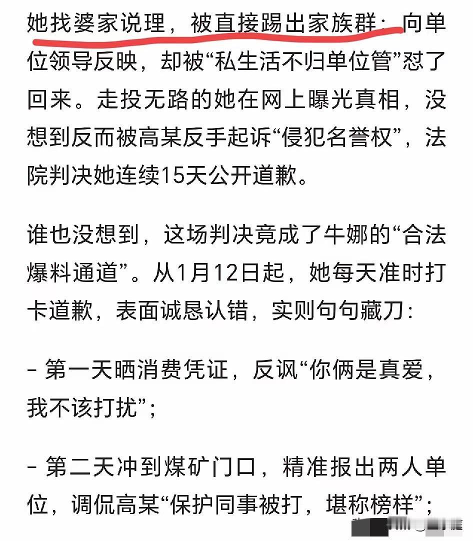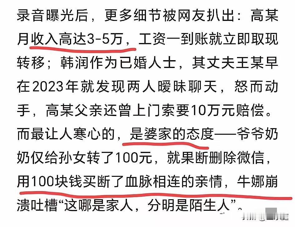 高飞曾在2023年大年初二就被韩润的丈夫打至头破血流,没想到,之后二人的婚外情还一直保持着!他俩的关系长达五年时间,想必,在公司里这已经是公开的秘密! 高飞,毕业于2008年,之后的人生里算是一路顺风顺水。表面上看来,他的职位不算太高,但在小城市里来说其待遇算是很丰厚了。他不仅娶了漂亮的媳妇,父母也有可观的退休金。无论,从哪方面看来都算是人生赢家! 或许,是过的太顺了,他才想在家庭之外寻求别样的滋味。 同韩润在一起后,两个人爱的不可自拔。事实上,韩润并非单身女性,一样有家庭有丈夫,但高飞丝毫不介意。 两个人如此亲密,双方的爱人又岂会一无所知呢?同牛女士一样,韩润的丈夫也早就知道了实情。 2023年大年初二,如此美好的日子,本来是要陪同妻子回娘家走亲戚的。可那一天,高飞却被韩润的丈夫打了。纵使对方下手不轻,可高飞自知理亏,最终还向对方致歉了。 事情发展到这里,按理来说,一般就是两个选择。要么各回各家,斩断一切联系。要么各自离婚,与真爱携手同行。然而,戏愚的来了:双方不但没有离婚,还保持着婚外的关系。 这些年里,高飞付出了感情不说,还真金白银的砸出去。 如此种种,身为正妻的牛女士当然不乐意了。她向婆家求援,婆家人置之不理。于是,她只能发视频讲述自己的遭遇。 可没想到,高飞却起诉了她。此举,高飞真可谓是搬起石头砸自己的脚啊! 眼下,牛女士虽输了官司,却赢了人心。近日她接二连三的道歉视频曝光后,高飞和韩润彻底火了,毕竟现在,大家都知道他俩是真心相爱的。 只是,由始至终,我都搞不明白:既然那么相爱,为什么不早点离婚修成正果呢? 其实,好的爱情是要有道德底线的,不仅讲究先来后到,也得顾及他人。如若以伤害身边人为前提,那绝不是爱,那是孽缘!