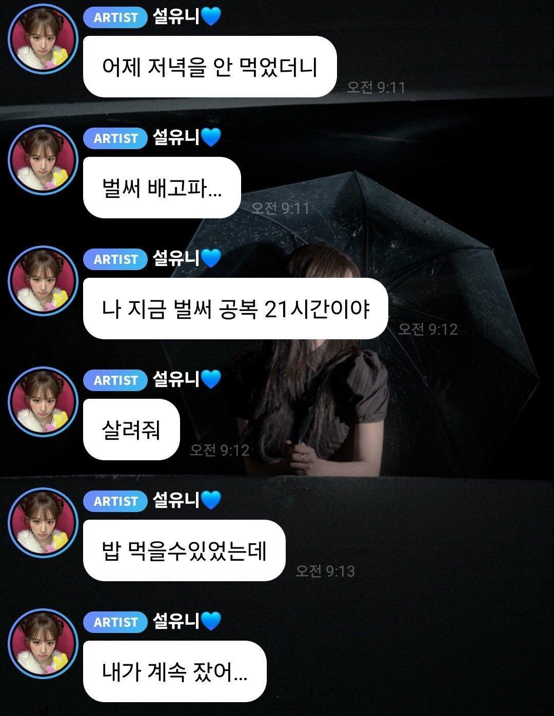 雪允泡泡说已经21个小时没吃东西了,结果她妈妈的Katalk消息立刻就来了[捂脸] 雪允:昨晚没吃 现在已经开始饿了... 我都已经空腹21个小时了 救命啊 本来有时间吃饭 结果我一直睡觉了雪允:妈妈来Katalk了妈妈:快晕倒了吧 空腹21个小时?不会是疯了吧 看来今天也很努力呢 妈妈发来表情
