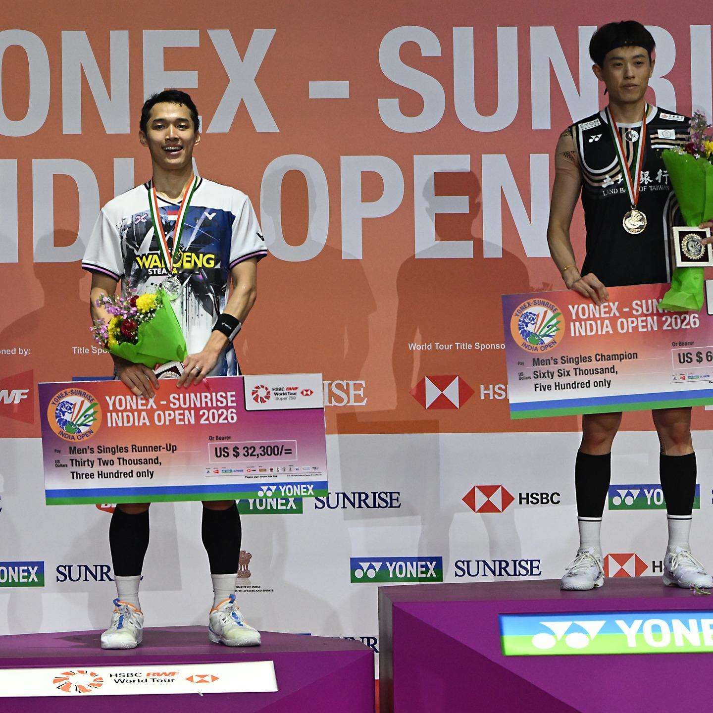 2026年印度羽毛球公开赛 最终赛果:中国队2冠1亚,韩国队、泰国队、中国台北队各1冠,日本队2亚,印尼队、丹麦队各1亚男单|🏆林俊易TPE|🥈乔纳坦🇮🇩女单|🏆安洗莹🇰🇷|🥈王祉怡🇨🇳男双|🏆梁伟铿/王昶🇨🇳|🥈绿川大辉/山下恭平🇯🇵女双|🏆刘圣书/谭宁🇨🇳|🥈福岛由纪/松本麻佑🇯🇵混双|🏆德差波/苏皮萨拉🇹🇭|🥈马蒂亚斯/博尔🇩🇰梁王组合印度赛夺冠圣坛组合2026年第二冠