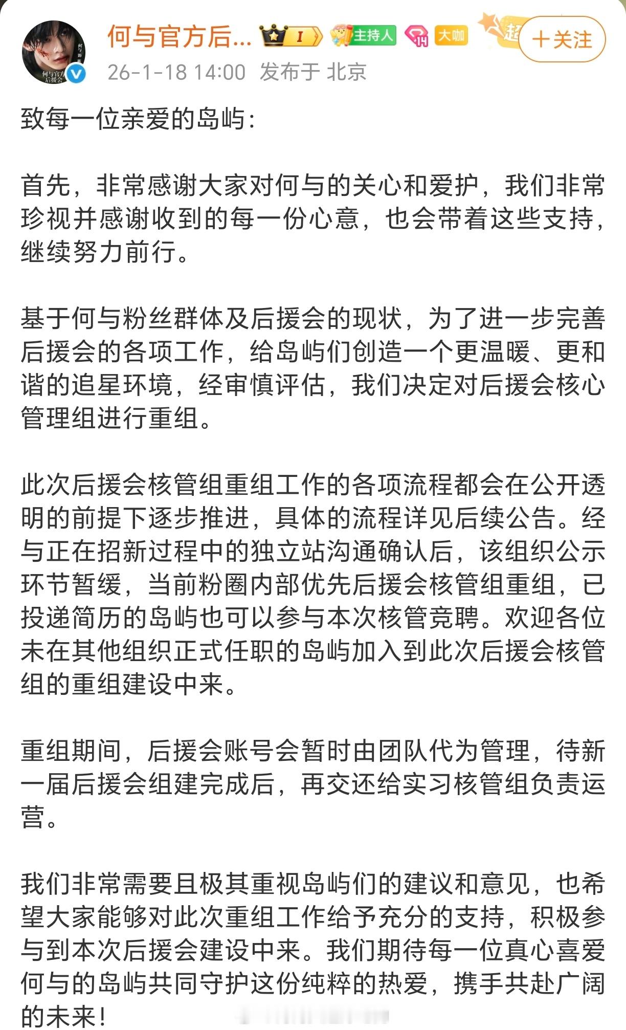 何与hyh要重组了,感觉团队还是很重视散粉意见的