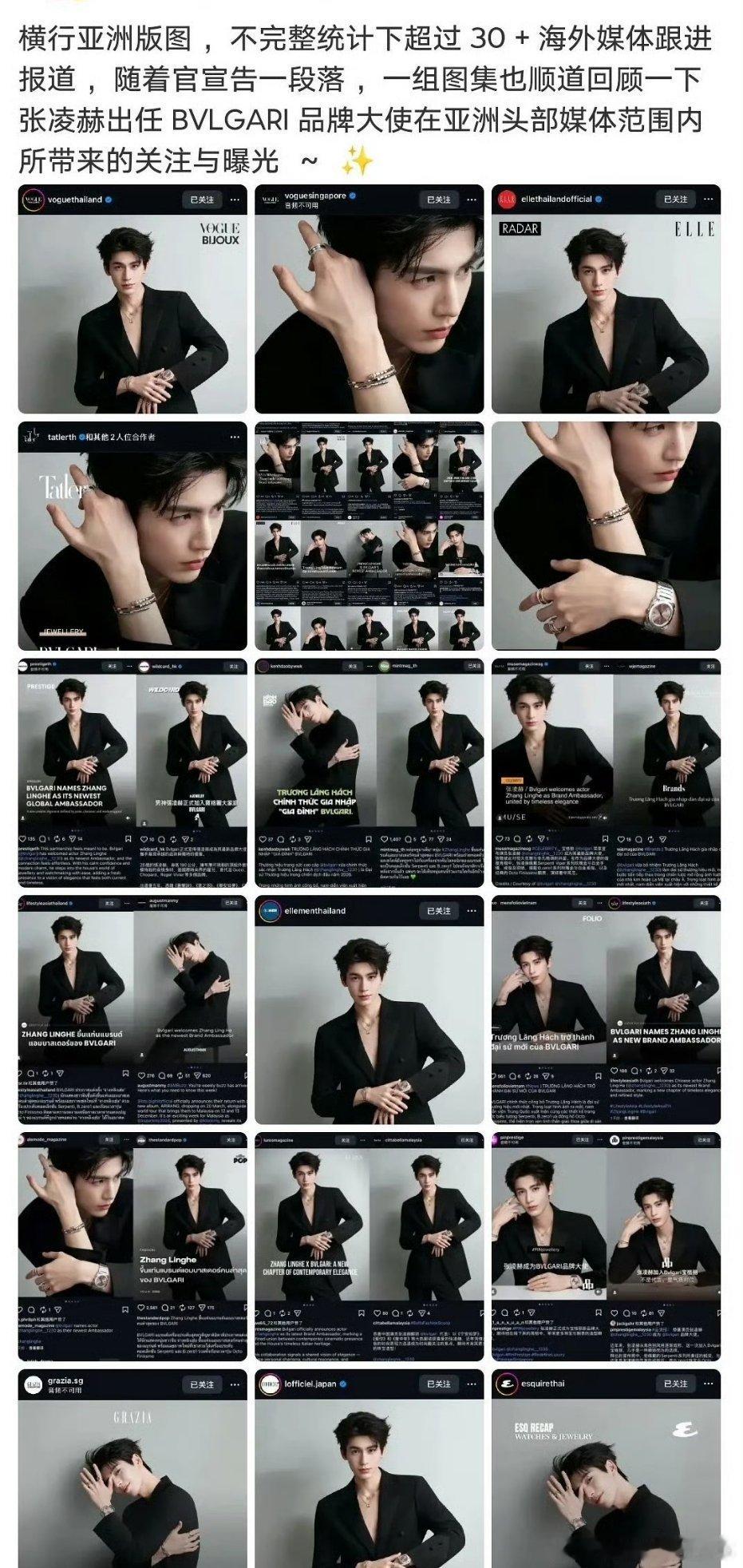 张凌赫空降宝格丽,内外网同步官宣,30➕海外媒体跟进报道,囊括各个亚洲头部媒体,