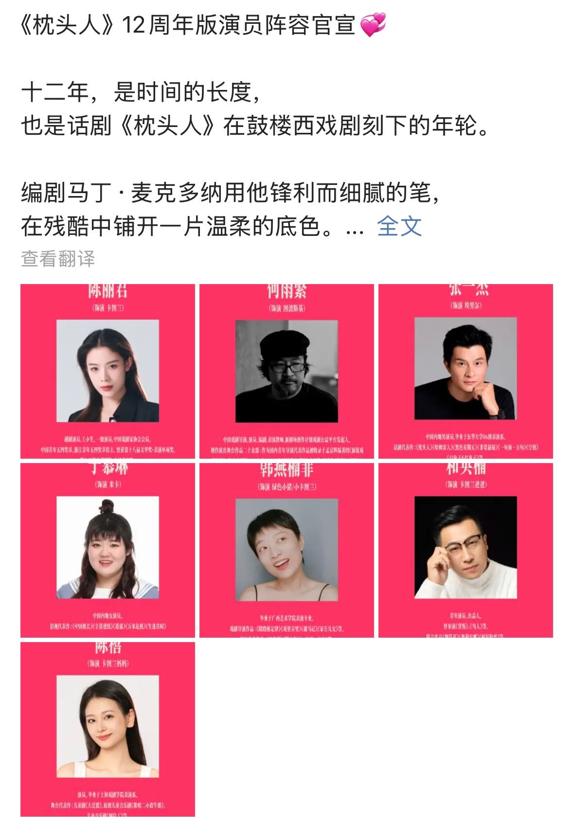 枕头人12周年版 演员阵容正式官宣‼️这个陈丽君还是太权威了,这简介看爽了期待优秀君君的话剧首秀 陈丽君获一级演员任职资格 陈丽君话剧枕头人
