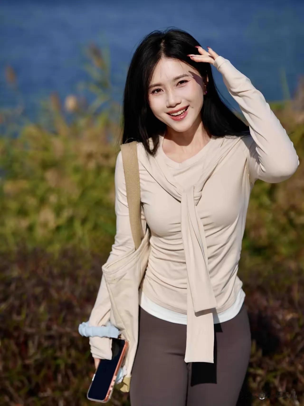 《岸线》 浅米色的衣袂漫过草尖 像风揉碎的云 落在岸边 发丝垂落时 牵住日光的金线 笑意撞进涟漪里 漾开细碎的蓝 芦苇在身后摇晃成柔软的墙 影子贴着地面 随脚步轻晃 斜挎的布包兜住半捧慵懒 衣角的褶皱里 藏着未说尽的晴朗 风掠过领口 携来水的微凉 指尖掠过发梢 碰落几缕阳光 脚步踏在秋草上 窸窣作响 所有温柔都不必声张 只在目光所及处 静静生长 图片来自网络,侵删