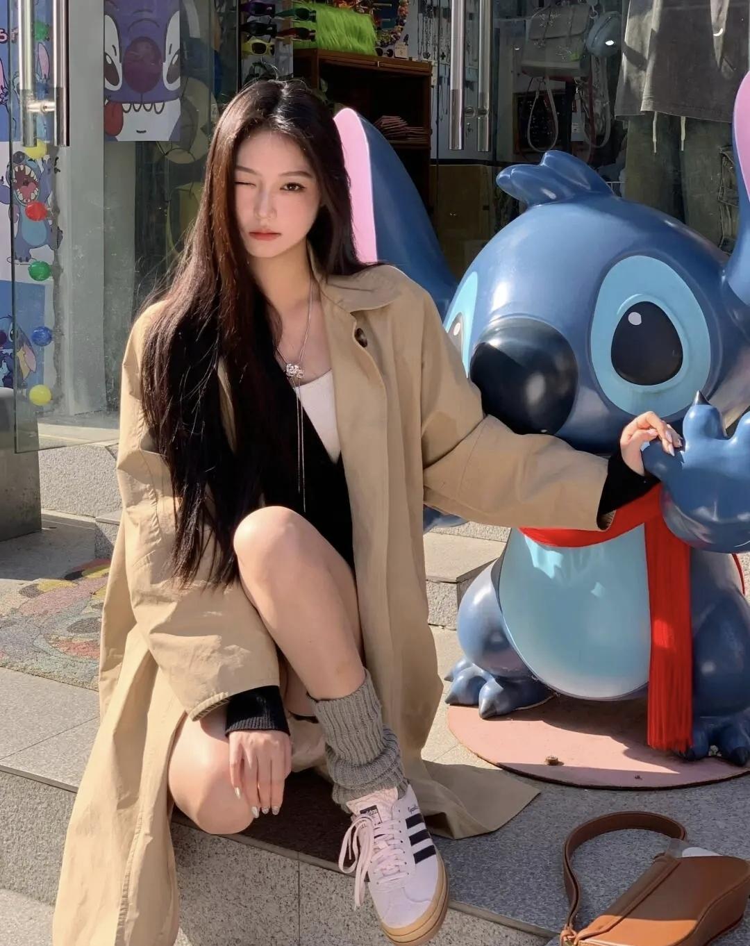 卡其风衣解锁秋日氛围感,和史迪奇撞个满怀的瞬间,把童趣与温柔揉进街头的阳光里,慵懒又甜的日常不过如此