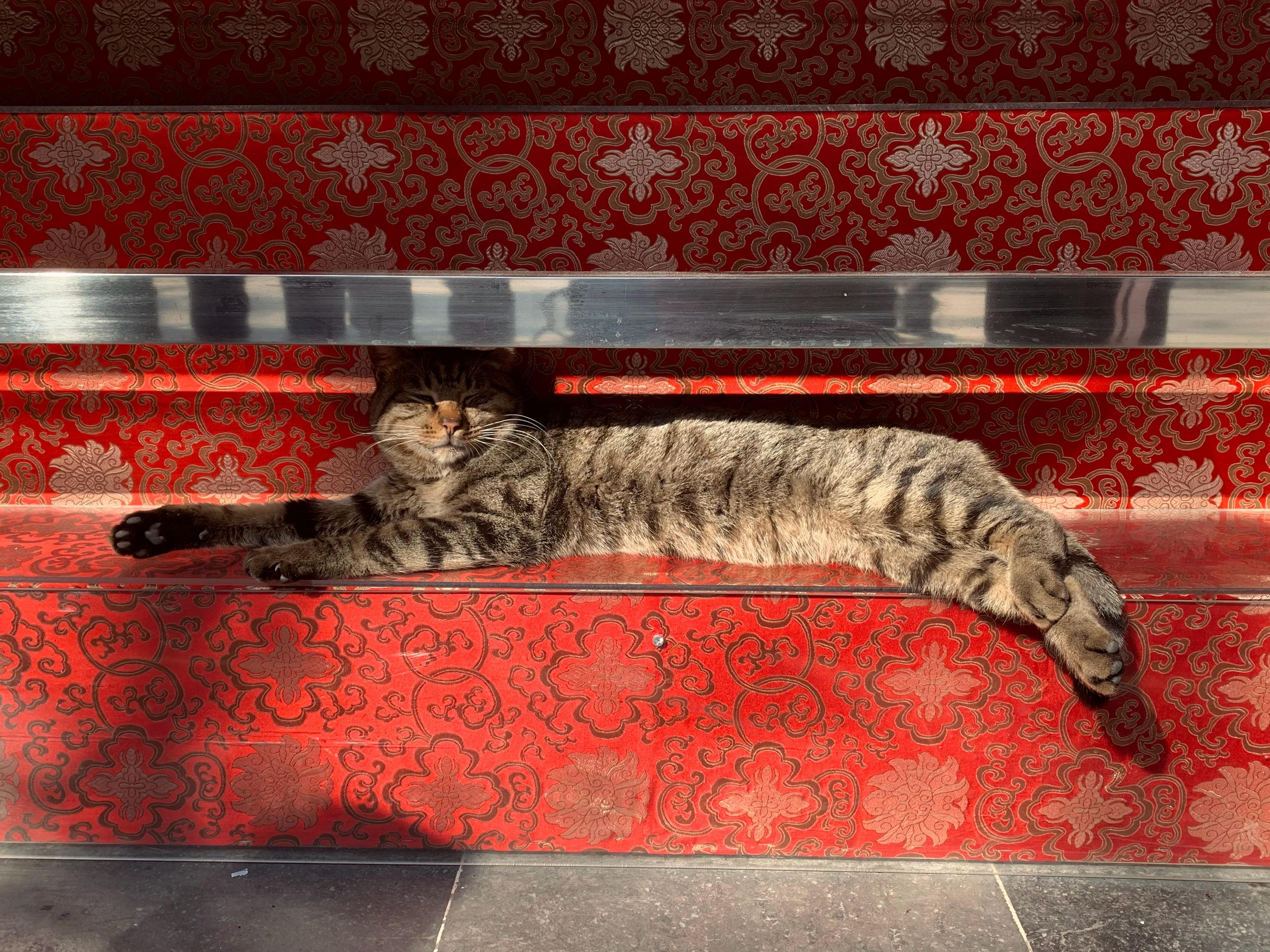 上海龙华寺三只猫在殿内吵架 吵架的是不是这两只🐈