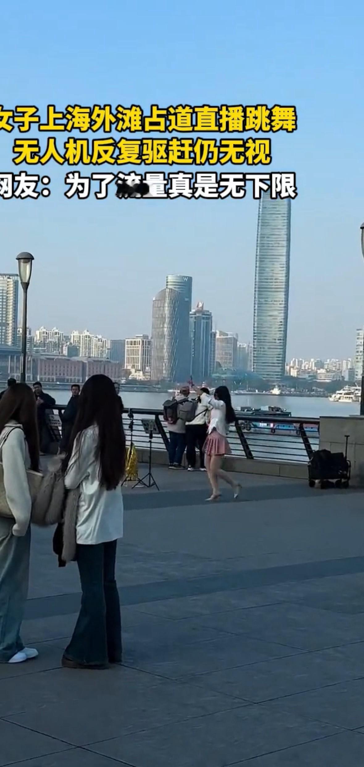 上海外滩又被网红堵死了! 无人机喊话驱赶,她充耳不闻... 几百游客排队等她拍抖音... 凭什么让所有人给你的流量买单? 外滩是你的私人片场吗? 上次被罚500块,转头又来... 警察来了就跑,走了又占... 这种人该不该永久拉黑? 评论区说说...