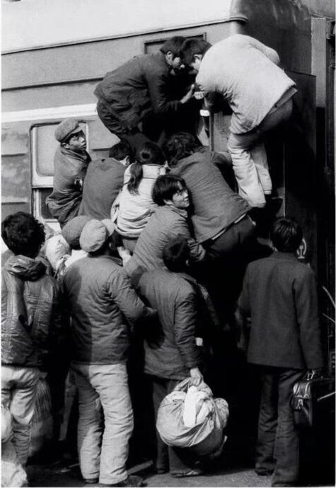 分享充满回忆的老照片今天入腊月门,已经听见春节的脚步声了!看看我们今天出行有多么方便,回家过年再也不会像如图所示的去爬车窗了!