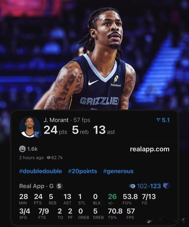 莫兰特还是有交易价值的,在刚刚结束的灰熊对阵魔术的比赛,莫兰特全场比赛一共首发打了28分钟,投篮13投7中,三分球4中3,罚球9中7,一共拿到了24分5篮板13助攻1抢断,2个失误,正负值+26! 其实从这场比赛来看,莫兰特还是有一定的实力的,有可能被灰熊主教练把心态搞炸了,正常发挥全明星实力还是有的,去森林狼或者火箭有可能总冠军,或者 雄鹿 热火都不错