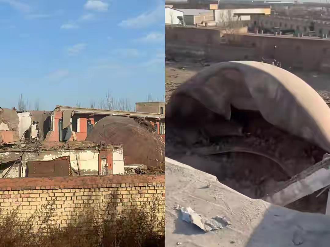 这大铁球,空心的,直径6米多,直接把一座民房压垮,从天而降。幸好房子里当时没有人。已有80多人失联。