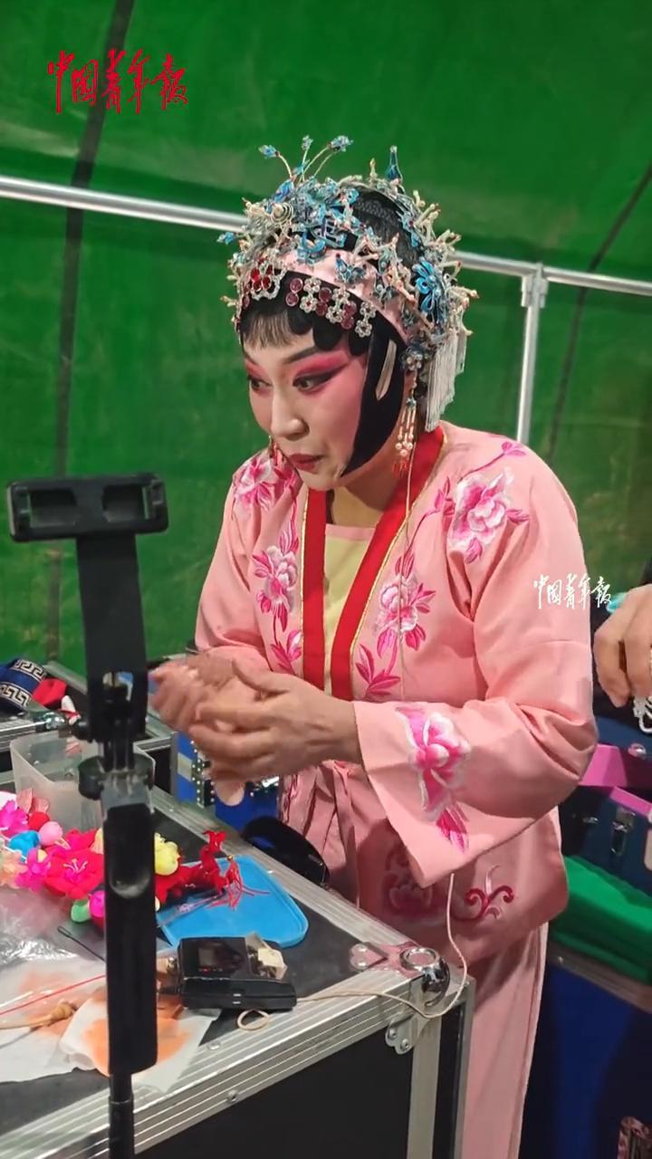 1月2日河南周口豫剧演员下乡演出。 尽管天气寒冷,但始终坚持一丝不苟。台下观众的头发和衣领结了冰霜,也全神贯注看戏。