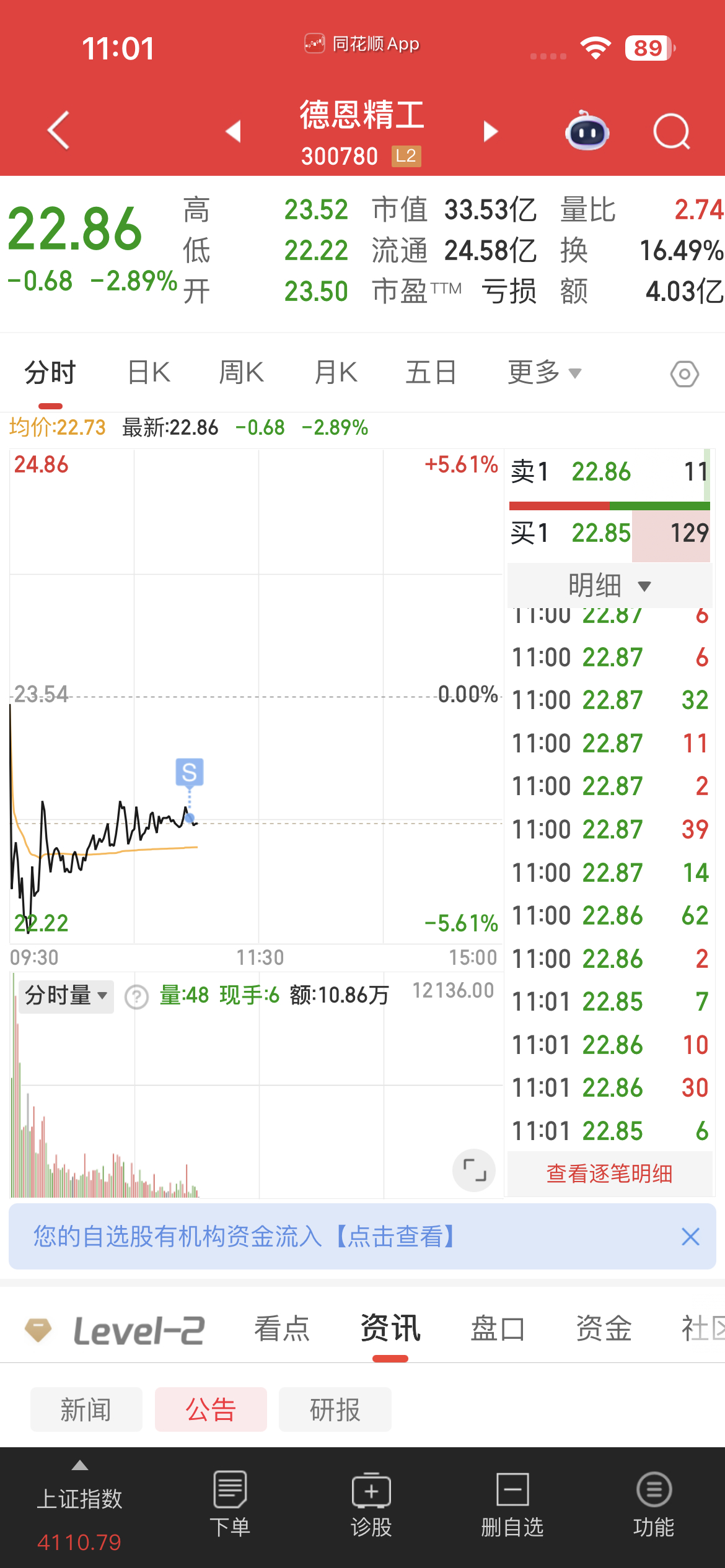 1月16号进的$德恩精工 sz300780$ 跑了!今日看盘