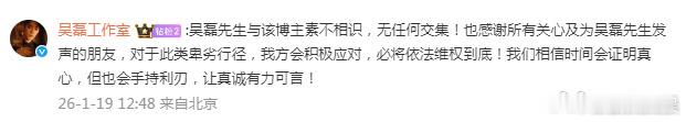 吴磊方依法追责造谣者吴磊 不认识 刚刚,发文回应网友白珊珊的爆料引发白珊珊 吴磊你欠我的拿什么还,“不认识,已委托律师依法追责。”随后,评论:“吴磊先生与该博主素不相识,无任何交集!”还称将依法维权到底。