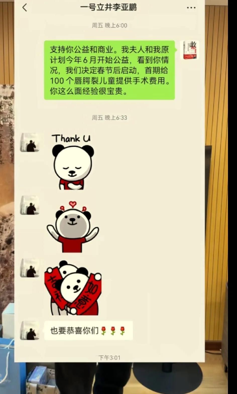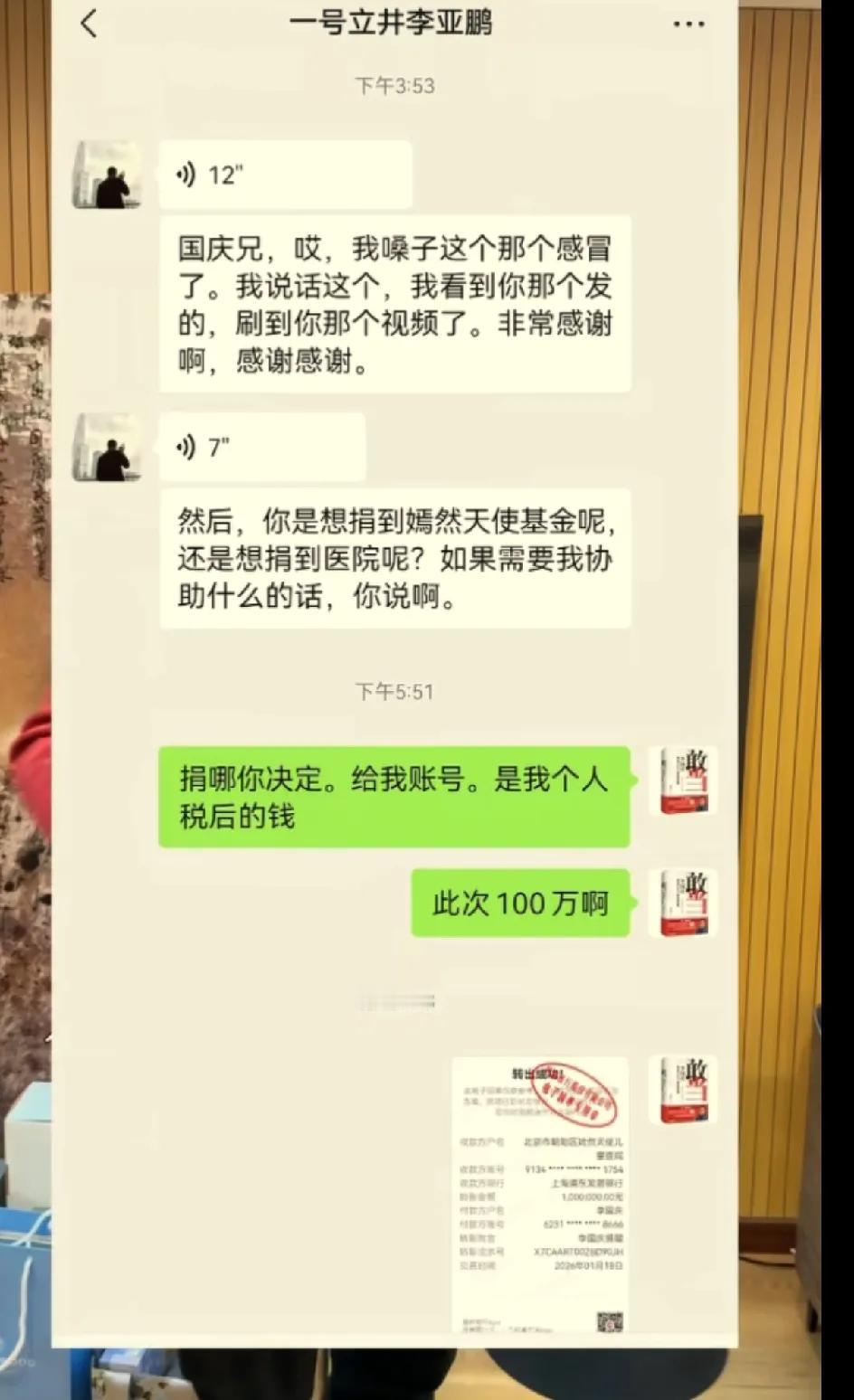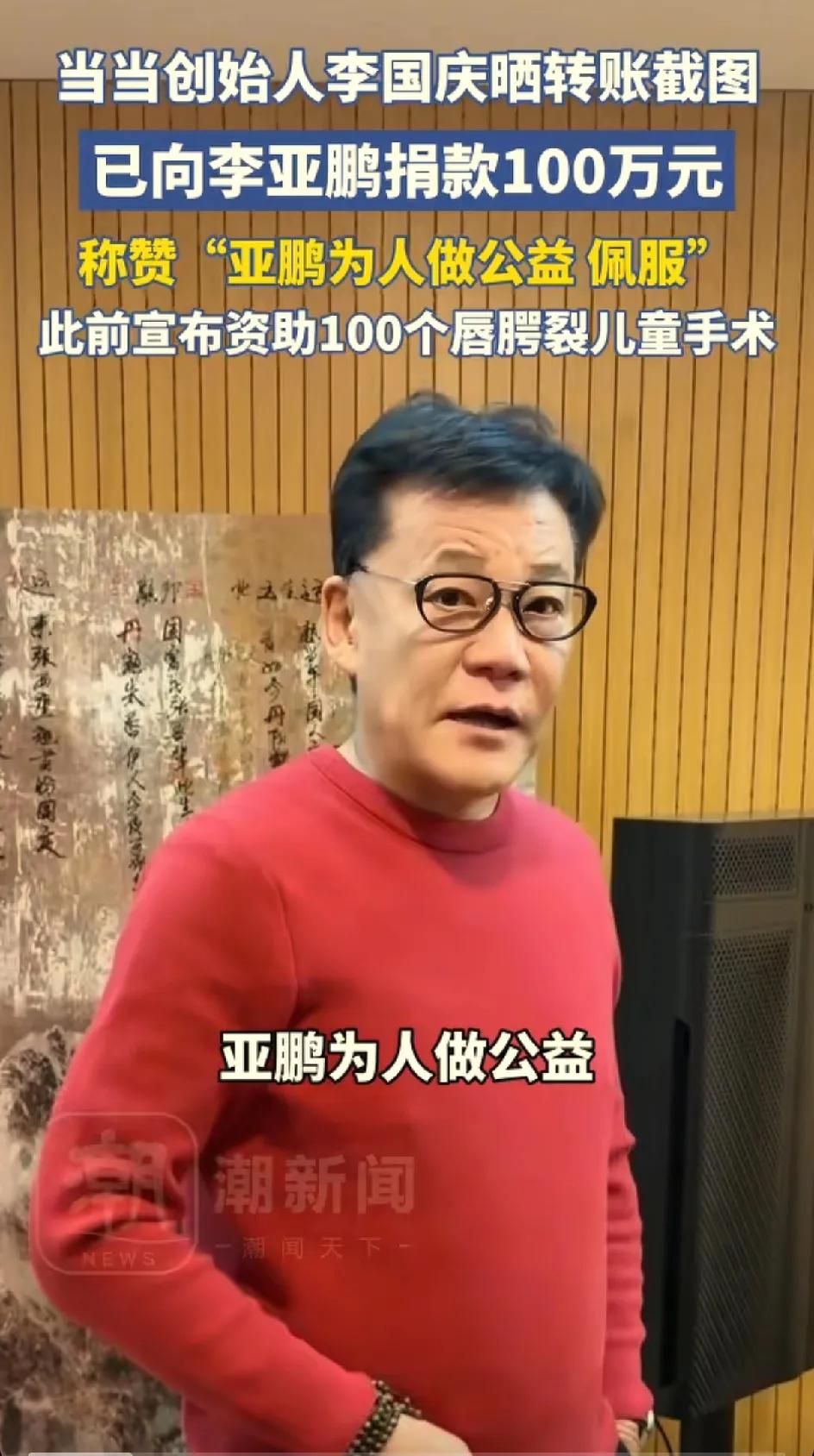 李国庆给李亚鹏捐款100万,晒出了两人的聊天记录。 李国庆说他和他的夫人原本计划等到2026年6月份开始做公益活动。为了李亚鹏,他们愿意提前半年。这只是第一笔公益支出,后续还会进行,还呼吁大家多做公益。 100万不是小数目,就这么轻易的捐给了嫣然天使基金,可见李国庆很大气,很有善心。李亚鹏在聊天中十分感谢李国庆夫妇的支持。