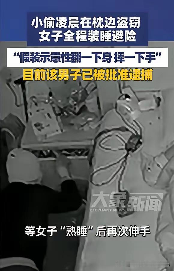 女子假装熟睡避险! 近日,武汉一女子在凌晨发现蒙面窃贼于枕边行窃时,选择装睡直至