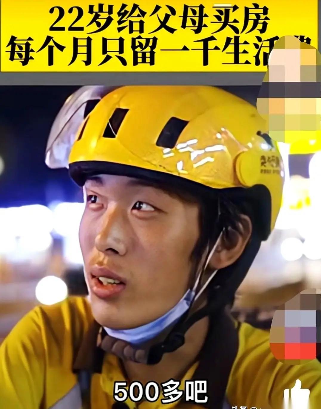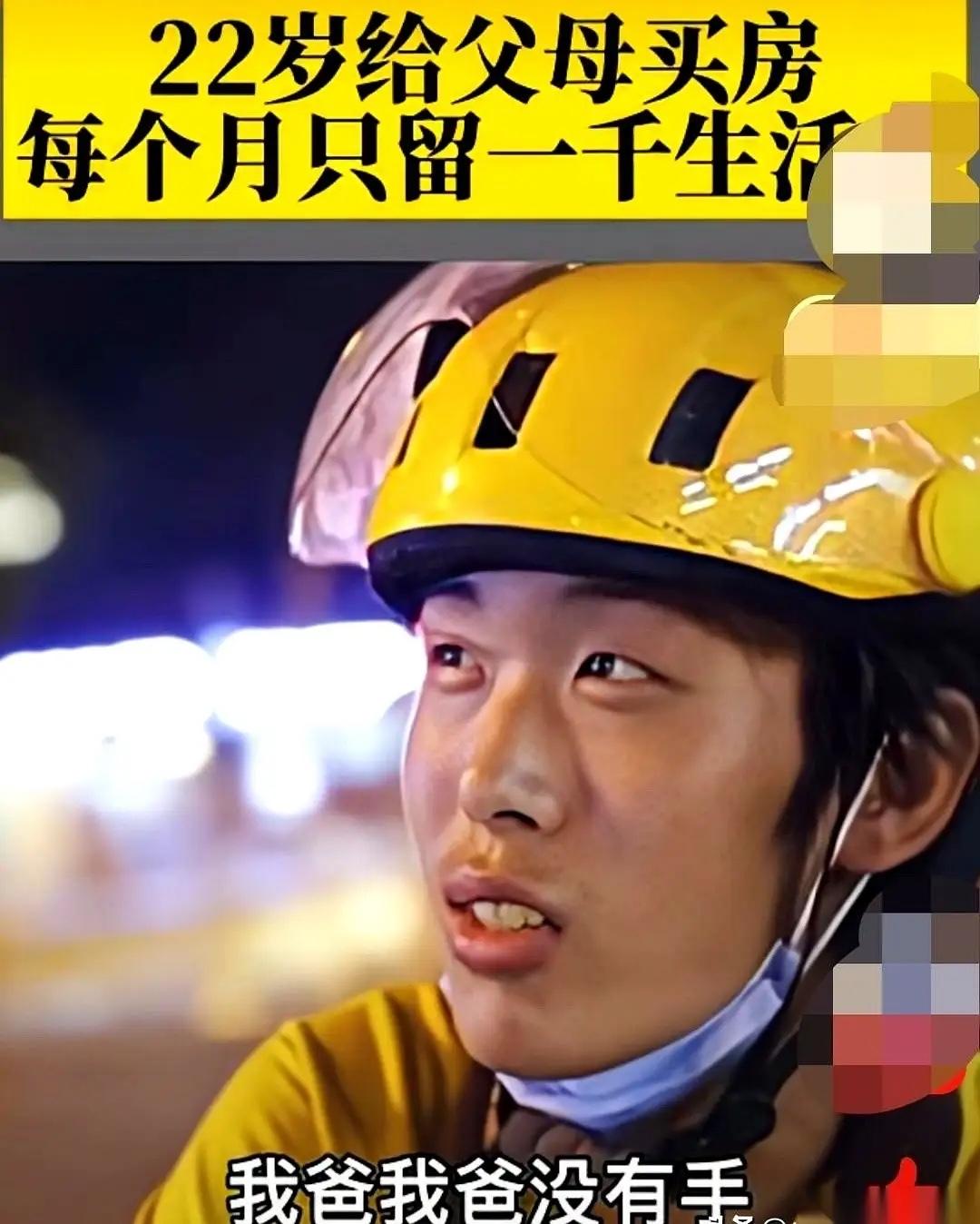 山东济南一个22岁的小伙,在北京送外卖。他一个月只给自己留1000块,剩下的钱,一分不留,全打给家里。因为他妈是聋哑人,他爸,没有手。 北京的凌晨五点,天还没亮透,街道上只有零星的环卫工在清扫路面,22岁的济南小伙李伟(化名)已经穿戴整齐,推着租来的二手电动车走出了城乡结合部的合租房。 他住的房间不足十平米,除了一张床和一个简易衣柜,连张像样的桌子都没有,每月750块的房租是他固定开销里最大的一笔。 戴上头盔,把手机牢牢绑在车把上,他点开外卖软件,开始了一天的奔波。 这份外卖工作,是李伟退学后找到的出路。大二那年,老家亲戚突然打来电话,说家里银行卡里只剩一百块,爸妈的日常开销都成了问题。 挂了电话,他没跟任何人告别,当天就买了北上的火车票。 没文凭没技能,送外卖成了他能快速挣钱的唯一选择。 站点里的老骑手见他年纪小,劝他这活儿太苦,风里来雨里去的扛不住,但他心里憋着一股劲,没应声,只是默默跟着学跑单。 夏天的北京像个大火炉,正午地表温度能烤得人脱皮,李伟穿着湿透又晒干,后背结着盐渍的短袖,在车流里穿梭。 为了多跑几单,他连口水都顾不上喝,午饭常常是路边买个两块钱的肉包子,蹲在树荫下三五口解决。 有次在小区门口中暑,被保安大叔扶到岗亭休息了半小时才缓过来,醒来第一反应却是掏出手机看订单,生怕超时被投诉。 冬天的寒夜更难熬,寒风像刀子一样刮在脸上,手指冻得僵硬,连手机屏幕都划不动,他就哈口热气搓搓手,继续接单。 遇到雨雪天,车轮在积水里打滑,好几次差点撞到护栏,他也只是稳了稳车,咬着牙往目的地赶。 一天跑十七八个小时是常态,最多的时候他一天接了一百多单,手机电量永远撑不到下班。 每个月到手的收入不算低,但李伟给自己定了铁规矩:只留1000块当生活费,剩下的一分不留全打给家里。 这1000块要覆盖房租、吃饭和电动车充电费,他过得格外节俭。 早餐是两个水煮蛋,午餐要么是10块钱的盒饭,要么是自己前一晚煮好的面条,晚餐偶尔加把青菜改善伙食。 以前爱喝的奶茶和零食全戒了,衣服鞋子都是拼多多上几十块钱的款式,穿坏了再换。手机屏幕裂了好大一道缝,他也舍不得换,说能接打电话就行。 每天收工回到出租屋,再累他也会点开视频通话。 镜头对面,是他最牵挂的两个人:聋哑的妈妈和没有双手的爸爸。 他不会标准的手语,都是小时候跟着妈妈慢慢学的,动作不算规范,却能精准传达彼此的心意。 妈妈会比划着问他累不累、吃没吃饭,他总是笑着点头,比划着“钱到账了,别担心”,哪怕有时候忙得根本没顾上吃饭。 为了方便视频,他特意给家里装了无线网,每天的这几分钟,是他一天里最踏实的时刻。 有一次视频,妈妈看着他消瘦的脸,突然比划了一句“你瘦了”,接着又比了个“抱抱”的动作,李伟鼻子一酸,却还是强忍着笑意,让妈妈放心。 他这么拼,不只是为了给爸妈凑生活费和买药钱,还藏着一个心愿。 跑外卖一年多,他凭着攒下的钱和向亲戚借的一点周转金,在老家济南给爸妈买了一套带电梯的房子,方便爸爸坐轮椅进出。 现在每个月四千多的房贷,他一个人扛着,依旧坚持把大部分收入寄回家。 他不让爸爸再做零工,只希望爸妈能在家好好休养,不用再为生计发愁。 有人问他这么年轻,怎么舍得对自己这么抠,他只是淡淡一笑。 对他来说,自己苦点累点不算什么,只要爸妈能过得好,就是最大的满足。 他最大的遗憾,是这辈子没法亲口叫一声“妈妈”,也听不到妈妈回应他,但他用自己的方式,把对家人的爱,融进了每一次奔跑、每一笔汇款里。 在北京的大街小巷,李伟只是无数外卖骑手里的一个普通身影,但他用22岁的肩膀,扛起了一个家的重量。 那些风里雨里的奔波,那些省吃俭用的坚持,都藏着最质朴的孝心,在平凡的日子里,闪着最动人的光。
