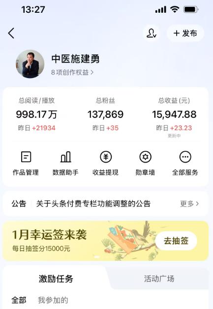 有人说中医自媒体不好搞,但我却不这么认为。我一个退休老中医,每天利用自己的业余时间,写点门诊故事和用药方法,没想到两年下来竟有了十几万粉丝,并且在深圳中医界也小有名气,很多患者也是因为从头条上认识了我,最后慢慢处成了朋友。如果时间能够重来,我一定早早把自媒体运营起来,每天坚持写几篇文章,就把当天的饭钱赚到了,这种感觉真的很爽!