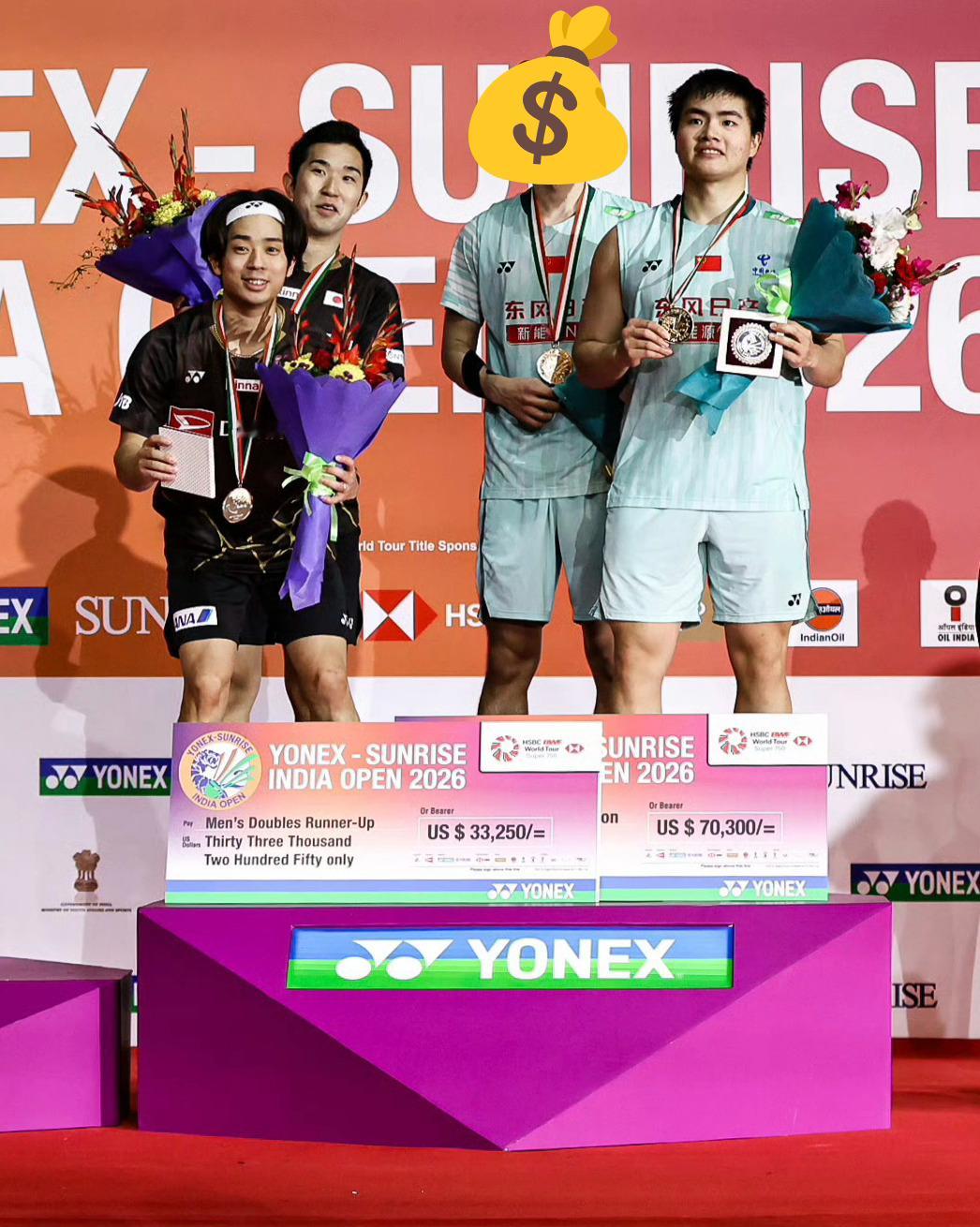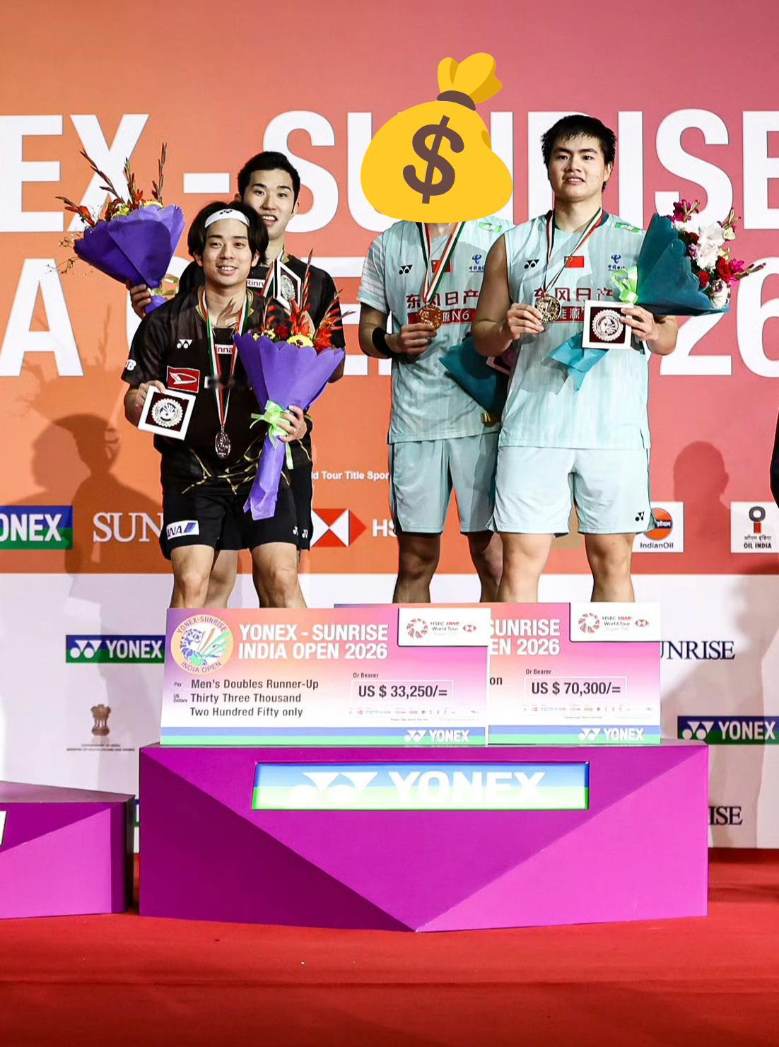 梁王组合复刻23年领奖姿势梁伟铿越来越萌了梁伟铿