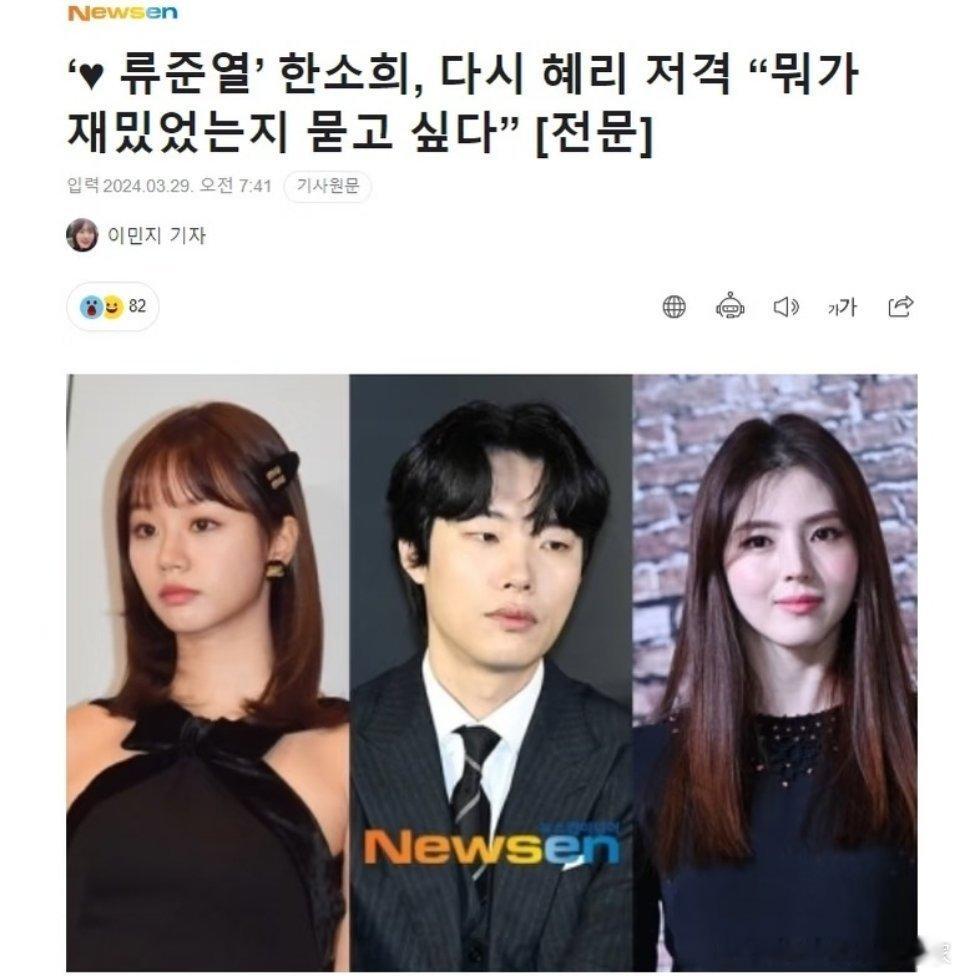 按她的说法,柳俊烈和李惠利两个人是2023年11月确定的分手,男方在四个月之内就有了新欢……七八年的感情我不相信刚分手就能马上开始下一段恋情,明明就是在分手之前柳俊烈和韩素希就有了接触或者暧昧,柳和韩被拍到恋情是2024年3月份,谁知道俩人确定关系是哪天啊?韩素希当初通过经纪公司想让柳俊烈方说明一下分手时间,结果柳俊烈经纪公司说是私生活,无法公开。看到网友都在🐎她,就开始慌了,最终她和柳俊烈公开恋爱两周后结束。网友一直谈论两个女生如何如何,但这件事最大的问题是柳俊烈,无缝衔接,最该被骂的应该是他吧!韩素希再谈与柳俊烈李惠利争议
