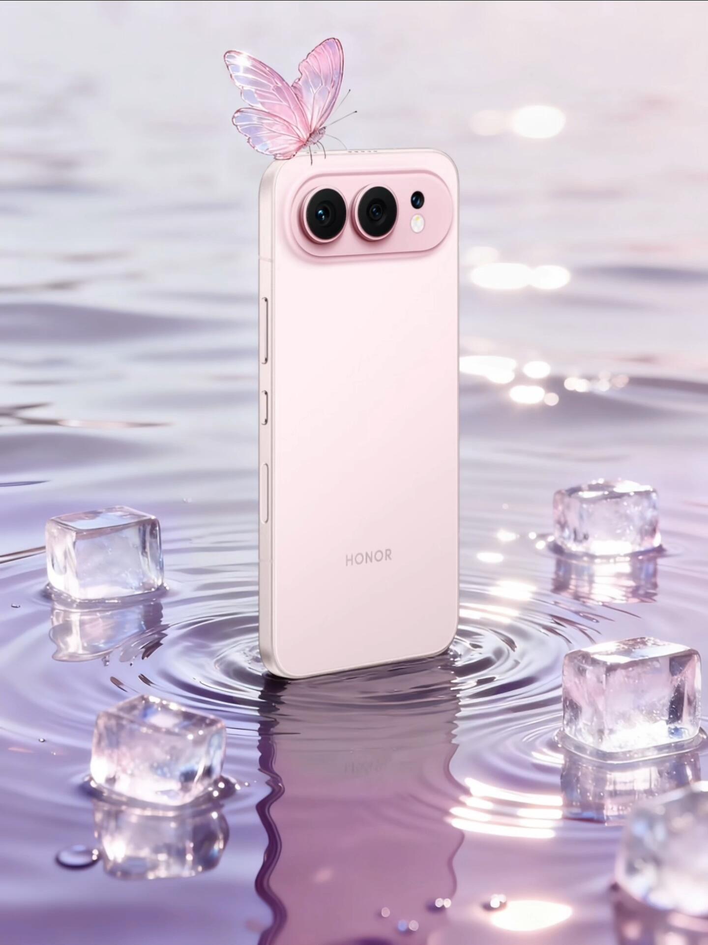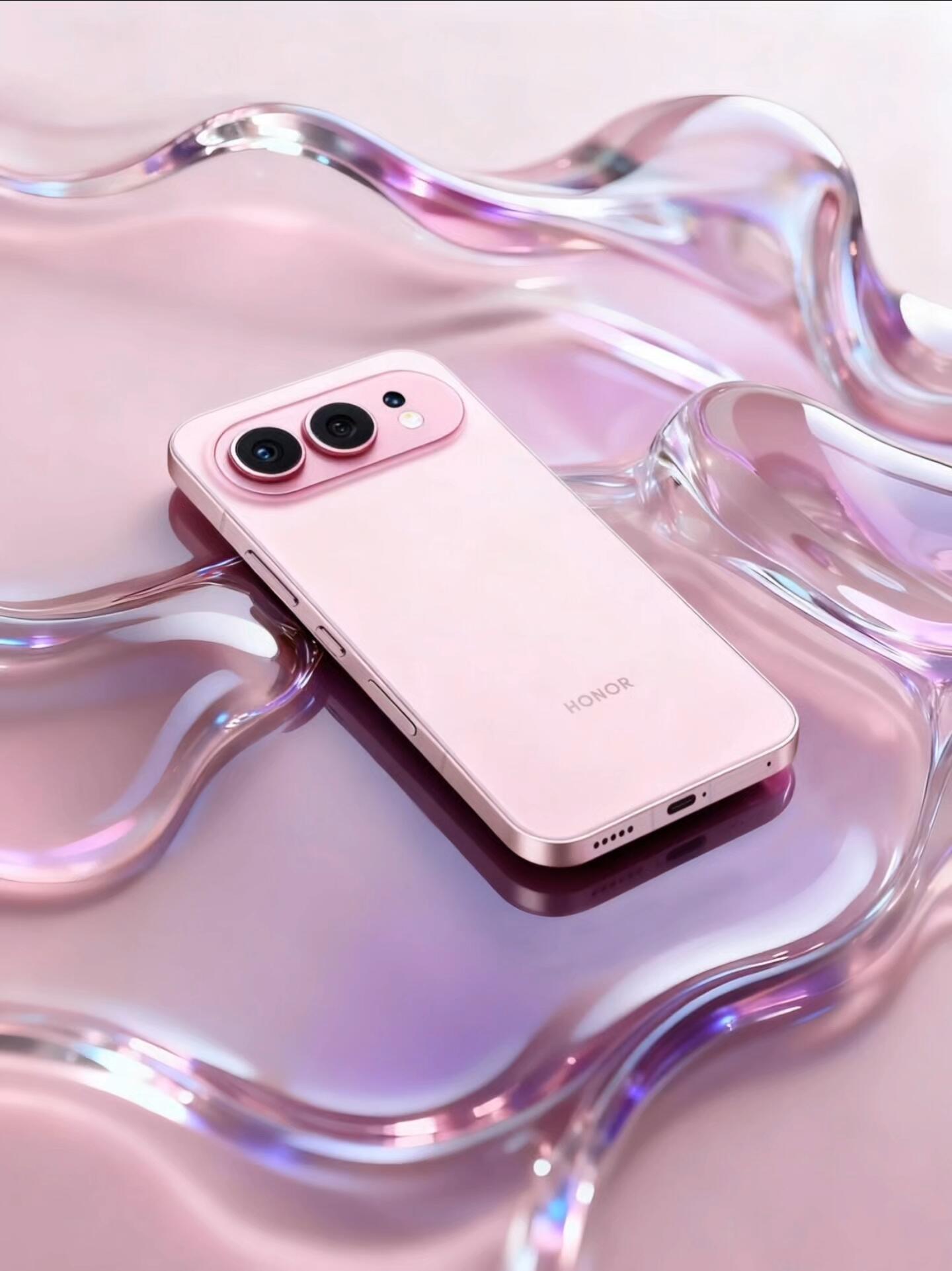 全焦段覆盖,随手拍大片让荣耀500,点亮生命中纯粹的活力。 拿到荣耀这款新机的粉色款,第一眼就被颜值戳中了!淡粉机身带着细腻的磨砂质感,握在手里滑溜溜还不沾指纹,水晶岛相机模组的设计也很精致,圆润的弧度和机身融为一体,少女心直接拉满。摆拍的时候搭了冰块和幻彩琉璃的背景,浅粉和清透的光影撞在一起,拍出来的图不用修都超有氛围感。单看颜值还以为是主打轻薄的小屏机,没想到续航和性能也没缩水,日常刷视频、拍照片都很丝滑。