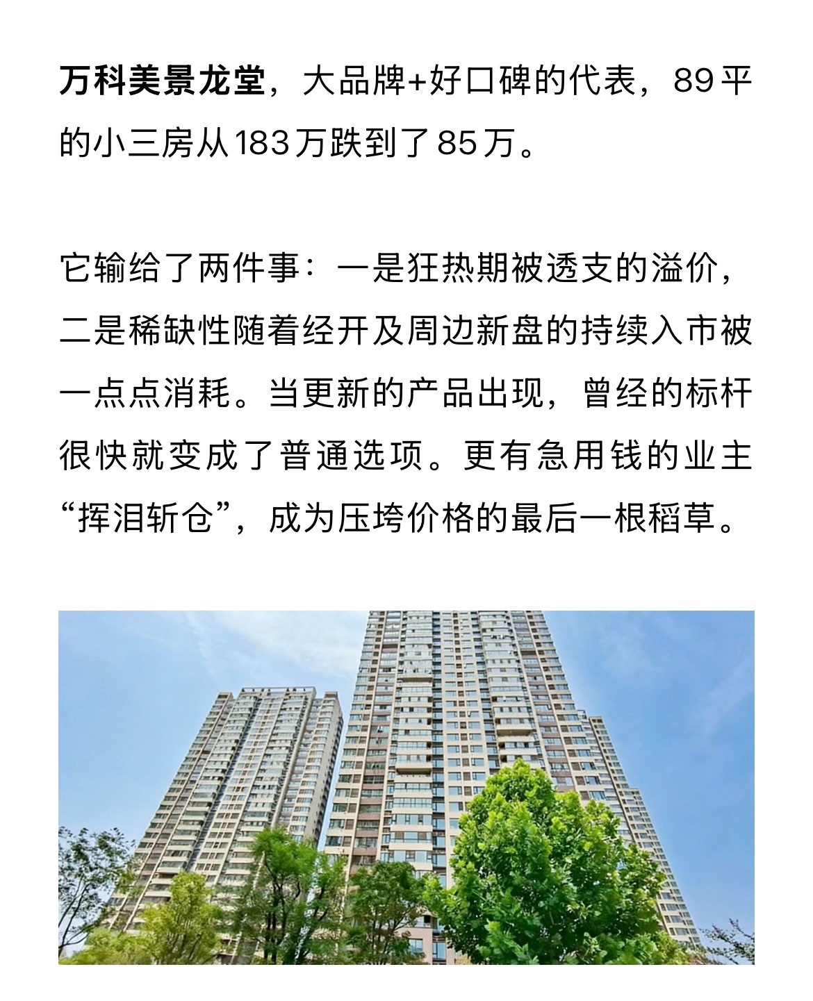 郑州高铁东站核心片区,竟然能跌70%,这太夸张了!郑州的房子普遍跌了50%以上,这就是目前郑州楼市现状。对于没有房子的人来说,这只是一组冰冷的数字,对于有房子的人来说,这是20年的努力一朝归零。前段时间有经济学家提出“财富修复”,真的是刻不容缓,只有房价上涨才能完成财富修复。普遍房产归零甚至负资产,拿什么消费?有什么信心消费?有恒产者有恒心,亘古不变的真理。