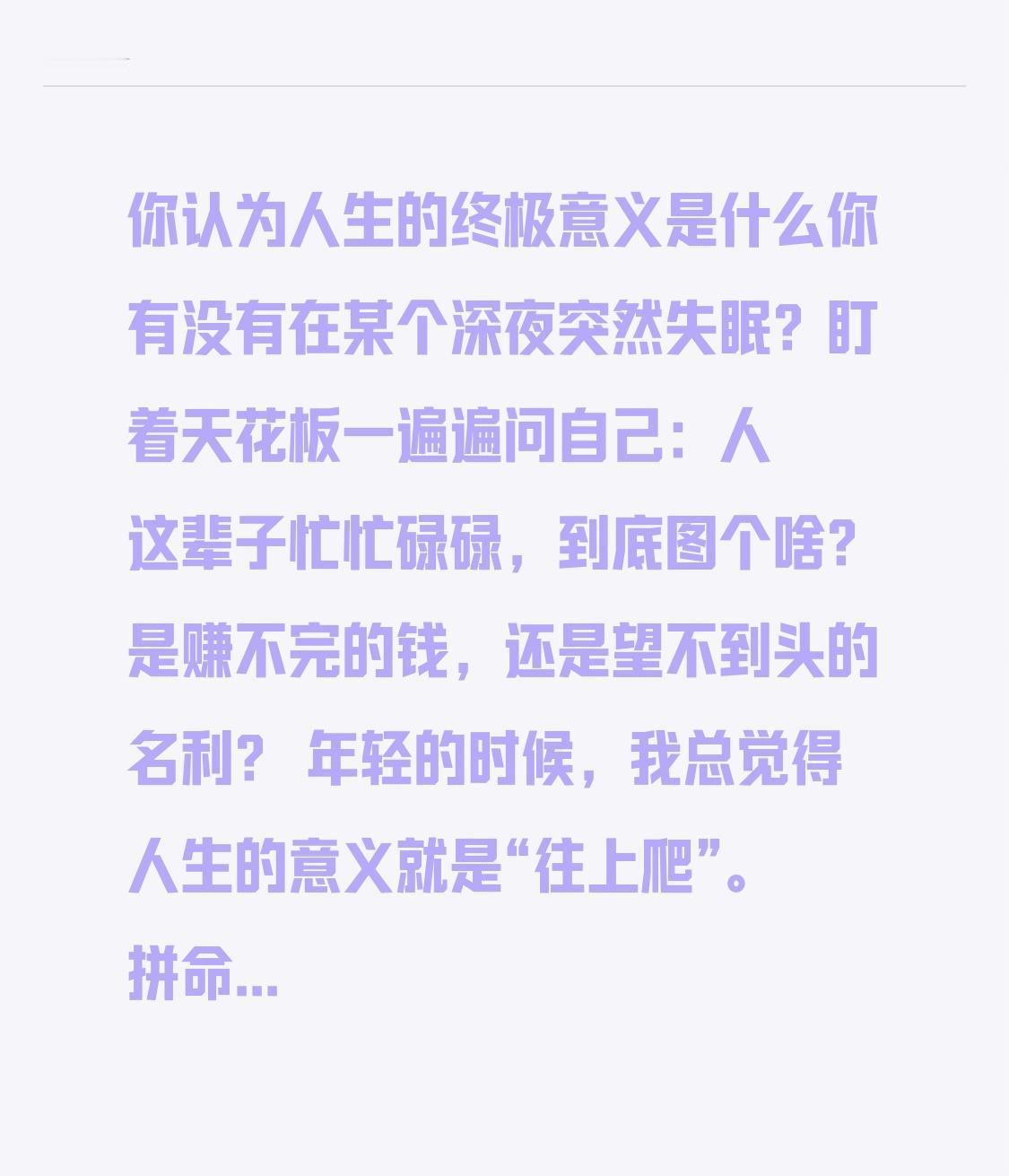 你认为人生的终极意义是什么 你有没有在某个深夜突然失眠?盯着天花板一遍遍问自己