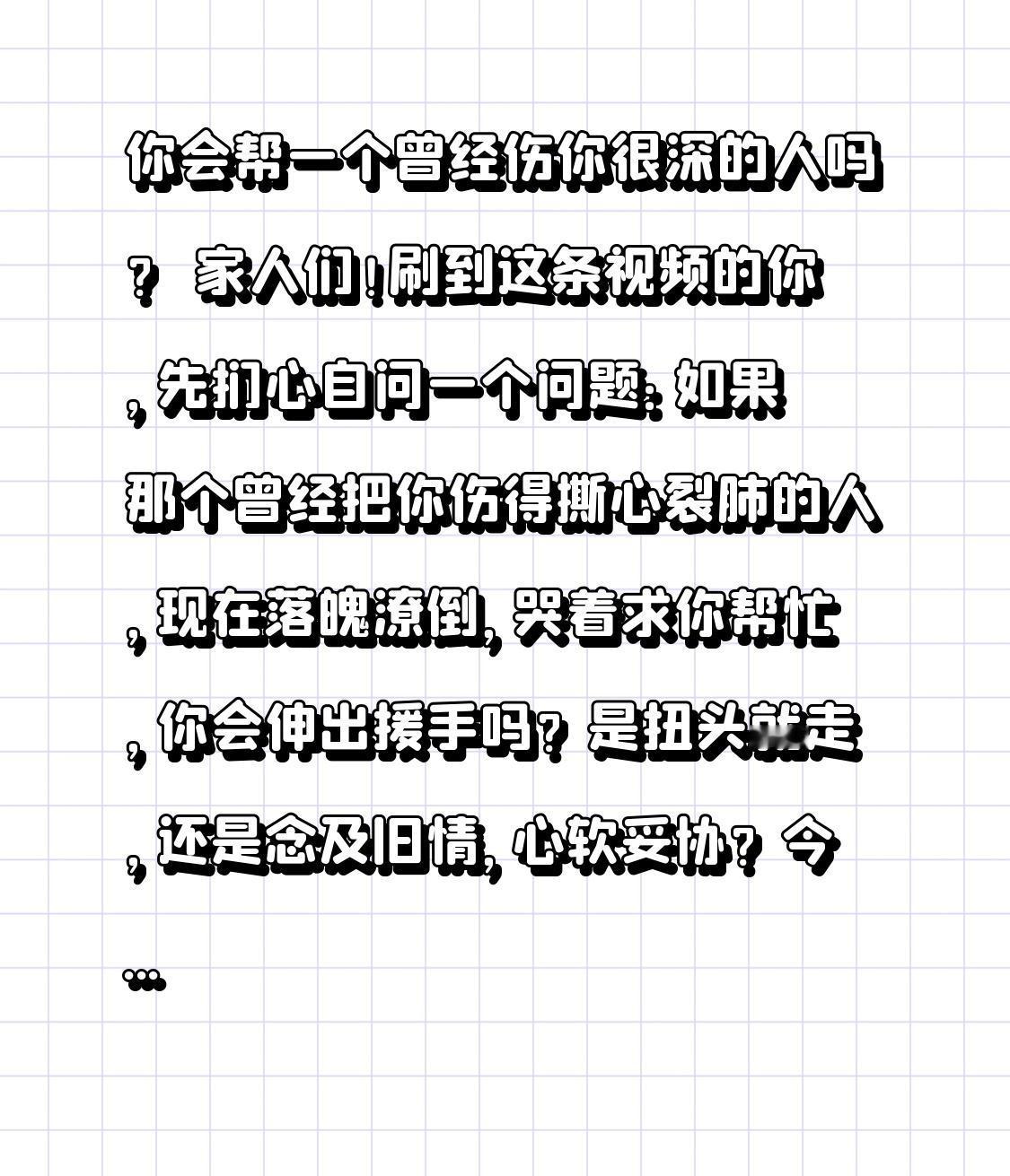 你会帮一个曾经伤你很深的人吗? 家人们!刷到这条视频的你,先扪心自问一个问题