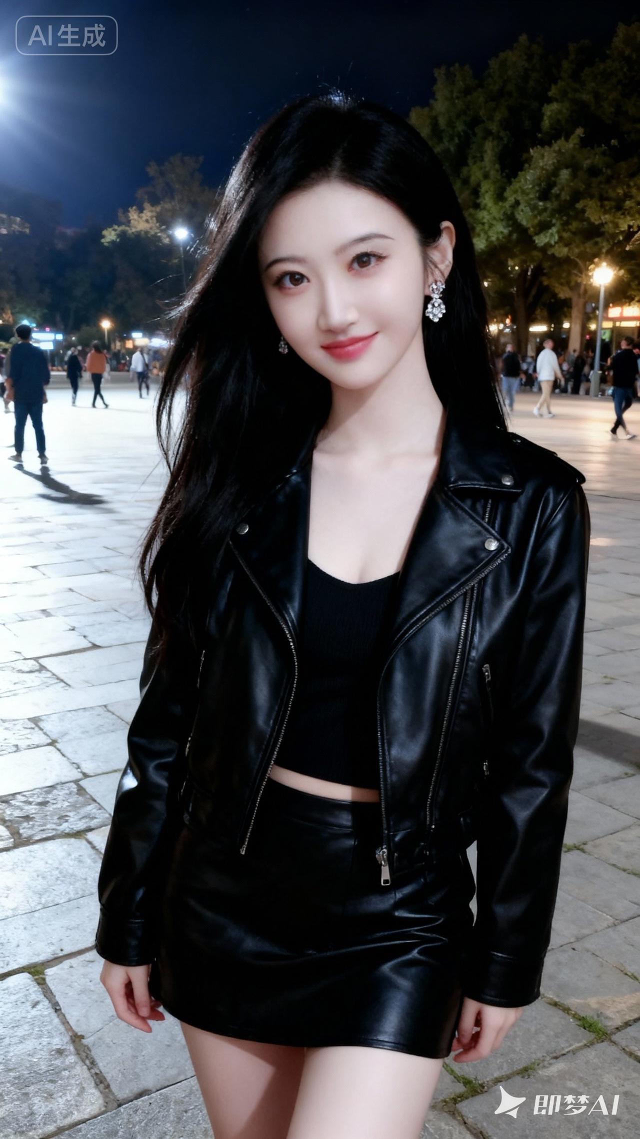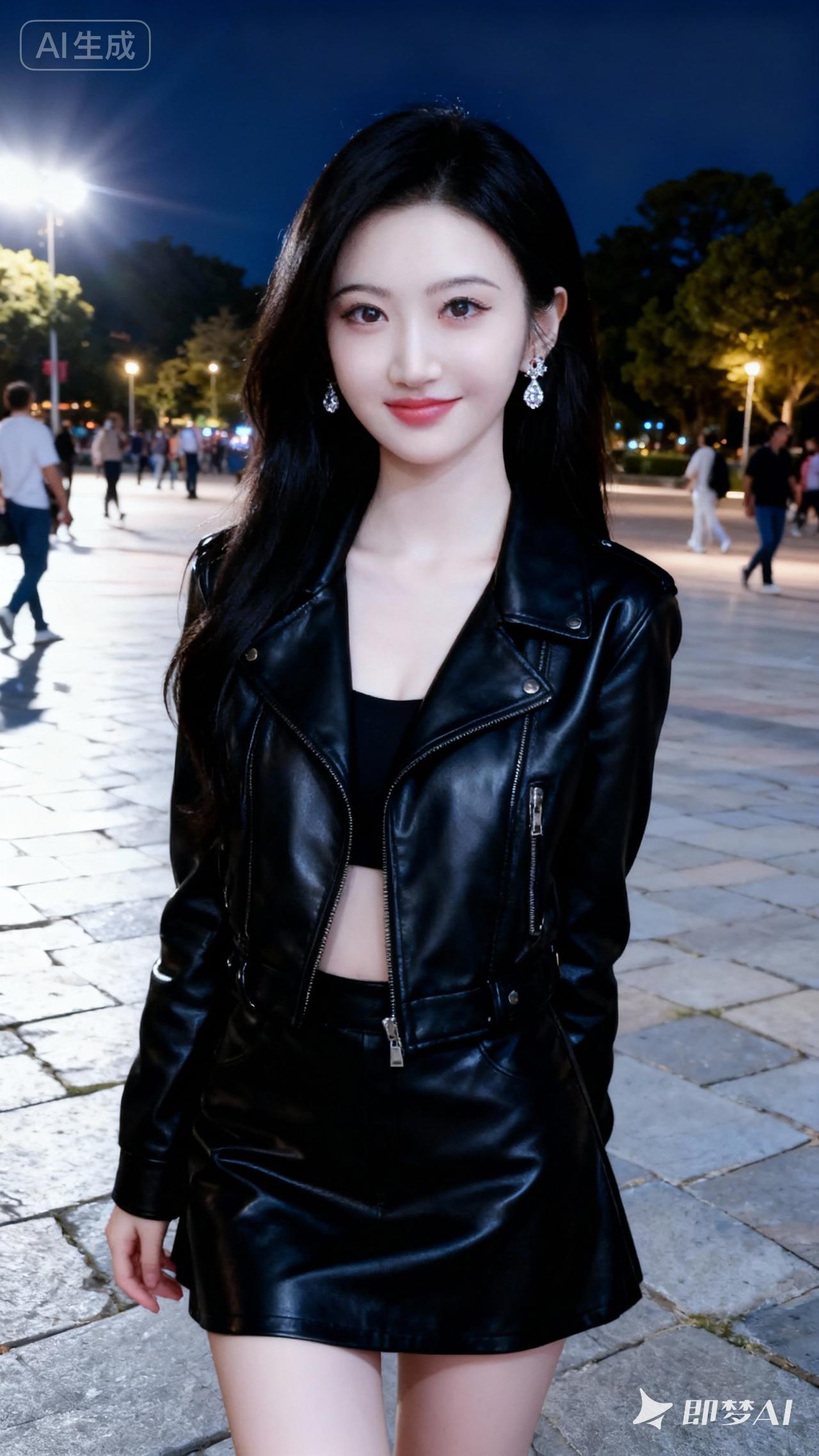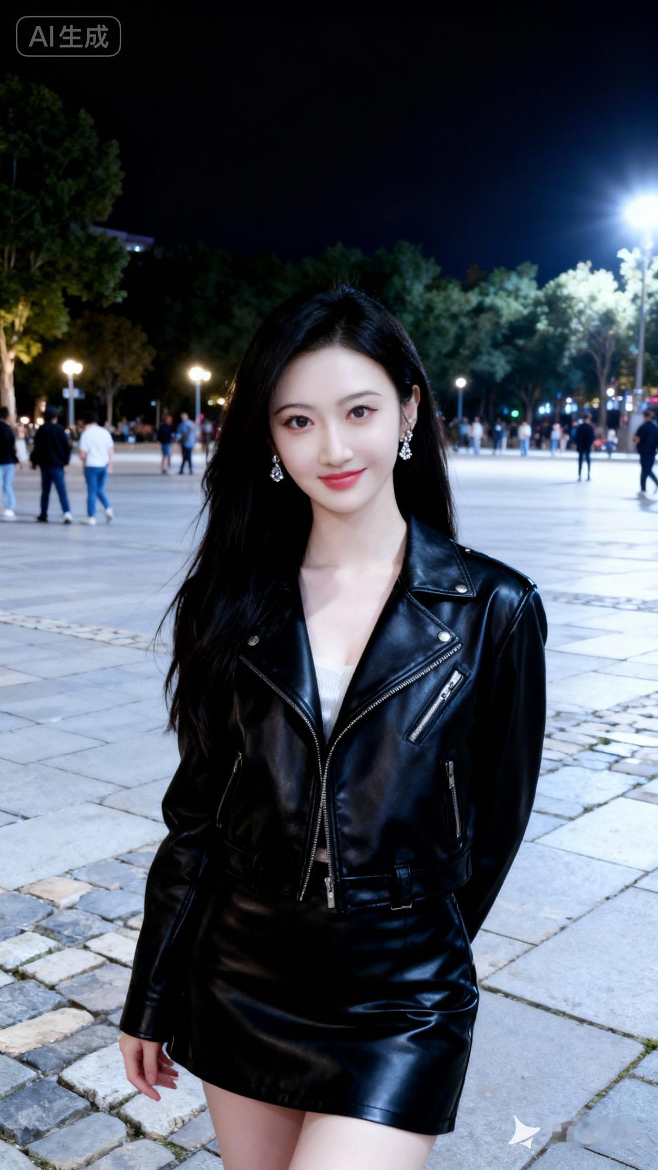 夜晚的都市风,黑色皮衣穿搭,时尚又帅气!