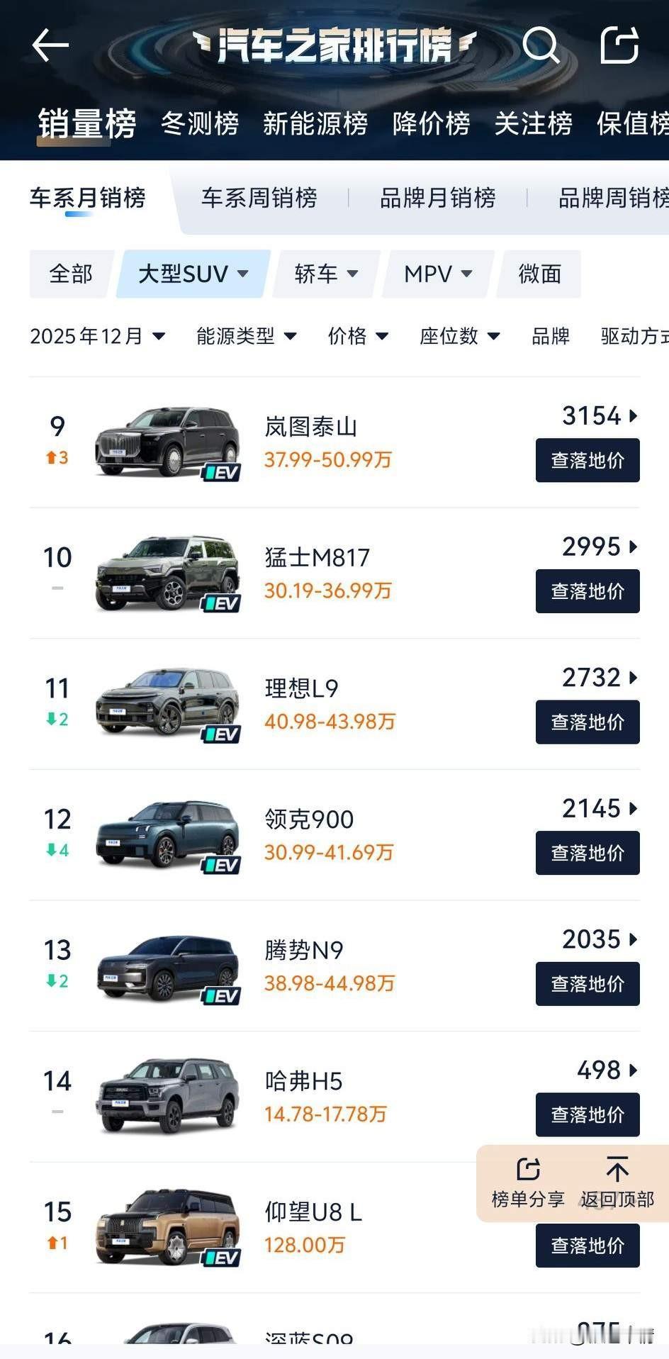 Link900销量成疑,直接OTA销量! 某名字很吉利的上市公司的子品牌,Link900车型在修改了线上所有平台12月份销量数据后,顺便把所有涉及到这款车型销量的高浏览帖子全部删除。 不得不说,这种骚操作真厉害哈! 先是把三大垂媒的销量全部调整高了,然后把已经贴图或者自制数据图的博主的高浏览量帖子全部投诉了。 请问你们在怕什么? 我们作为普通人可惹不起你们家大业大上市公司,惹不起,但从此劝退你家!