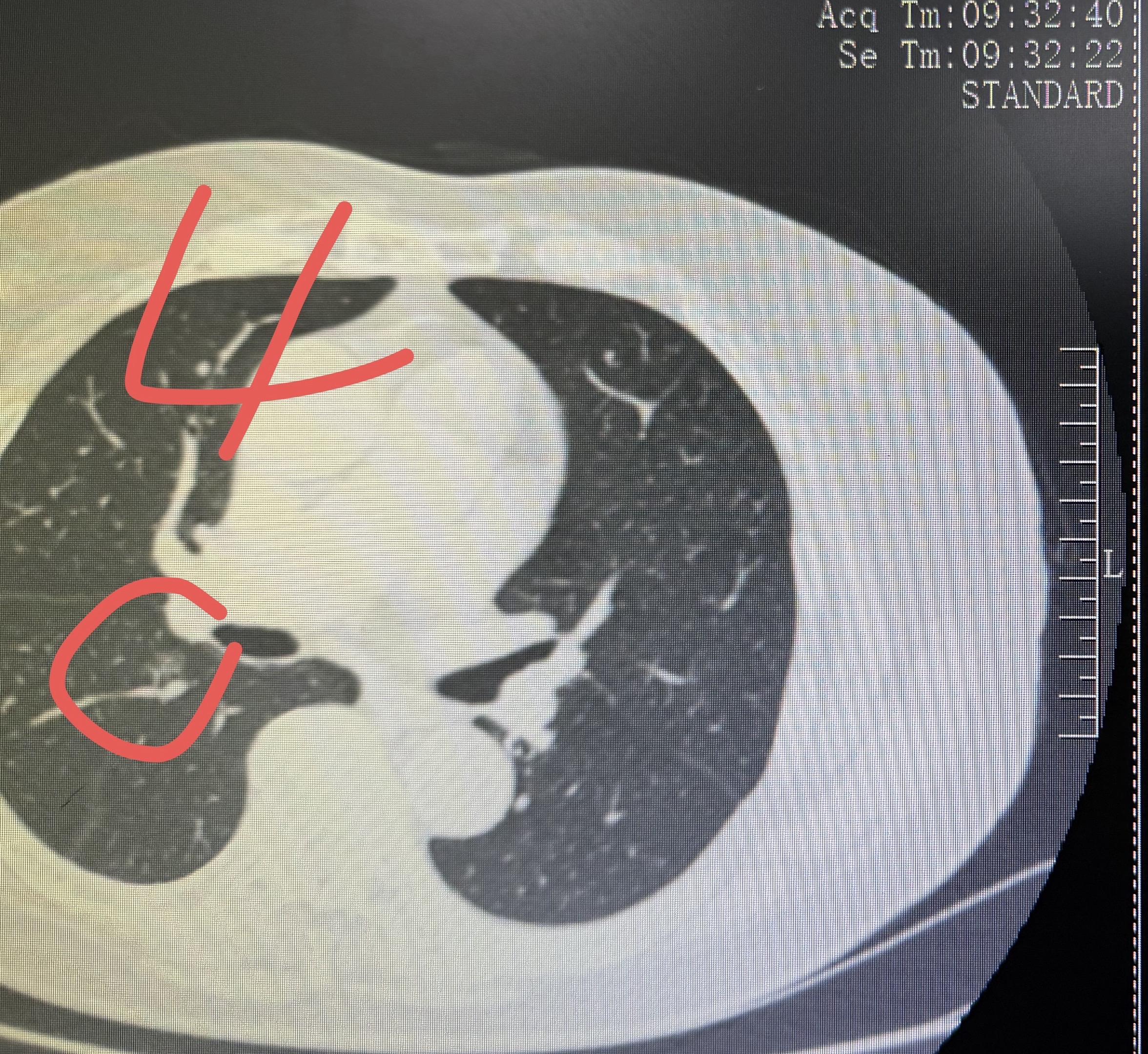 分享一个80岁多发结节的案例!如何治疗结。这个婆婆有4个有癌性磨玻璃结节,左侧两个1和2,右侧两个3和4。我们左侧做了腔镜楔形切除,术后病理浸润性腺癌,术后辅以治疗。右侧这两个结节在术后保守观察的过程中,明显缩小消失,应该是我们的术后辅助治疗起了作用。这就是,用一套治疗方案,解决了4个磨玻璃结节,该切的切,该保守的保守,病人损失最小化!