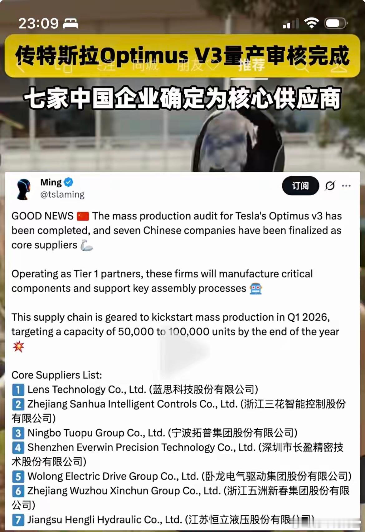 马斯克旗下机器人公司拟传出与7家A股上市公司合作,集体名单在下图中!