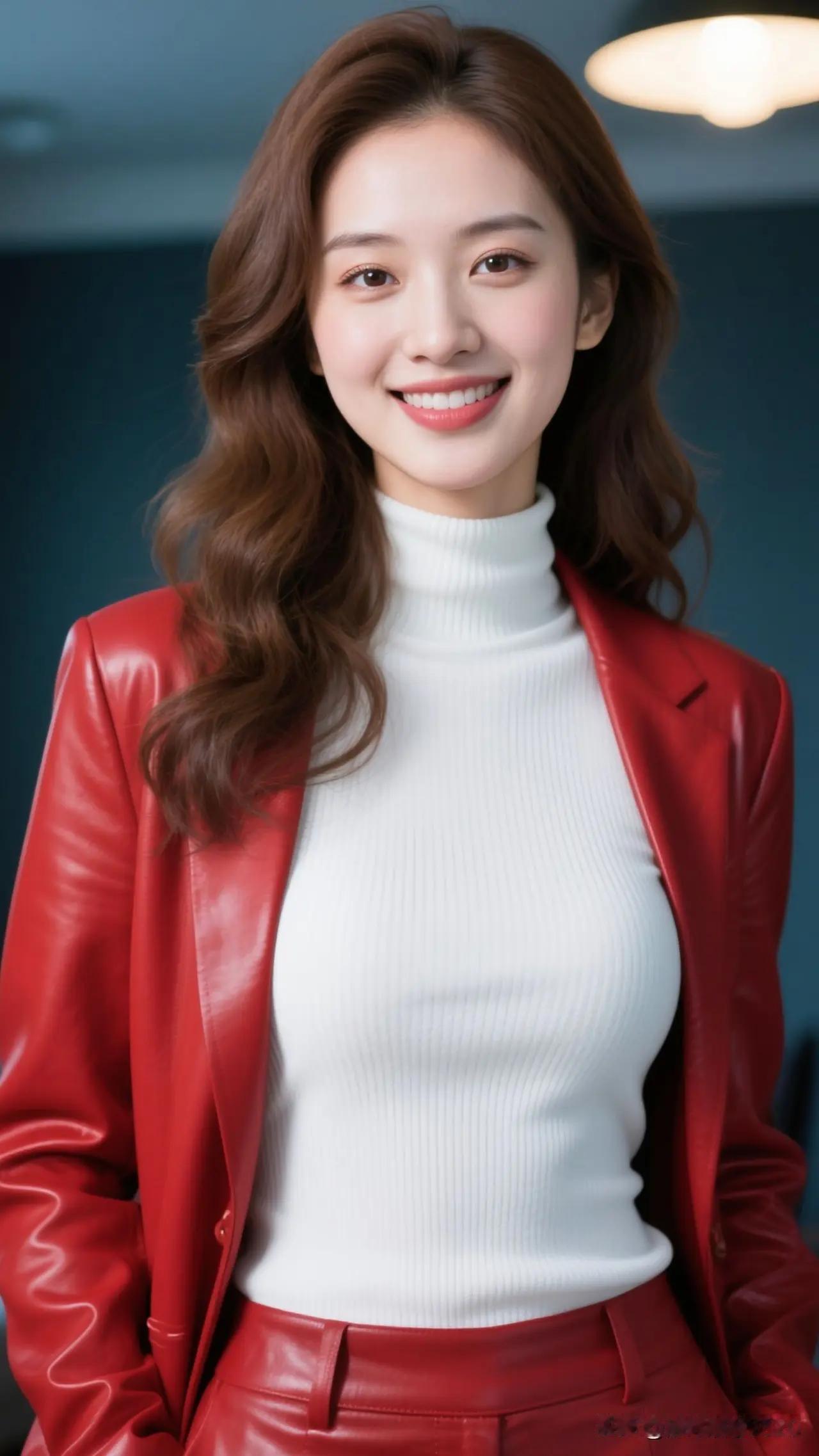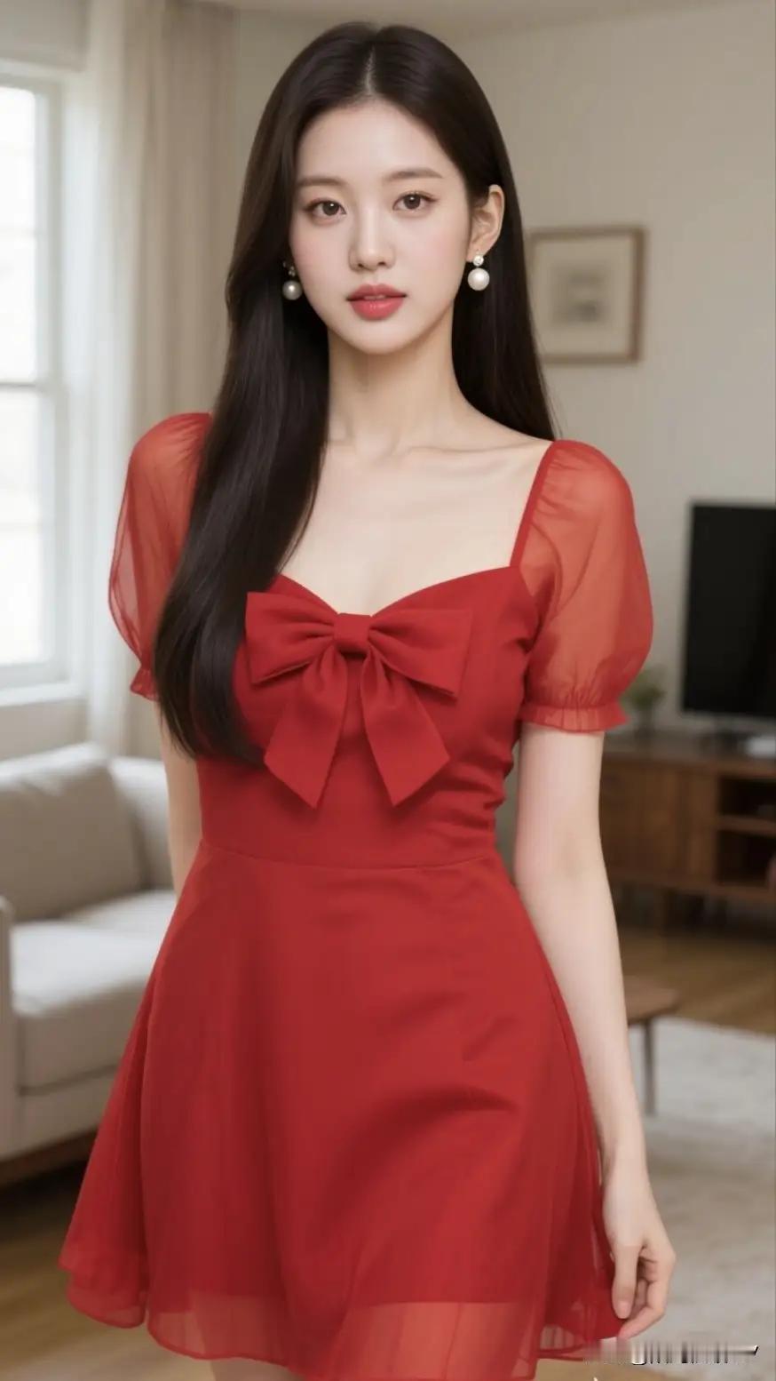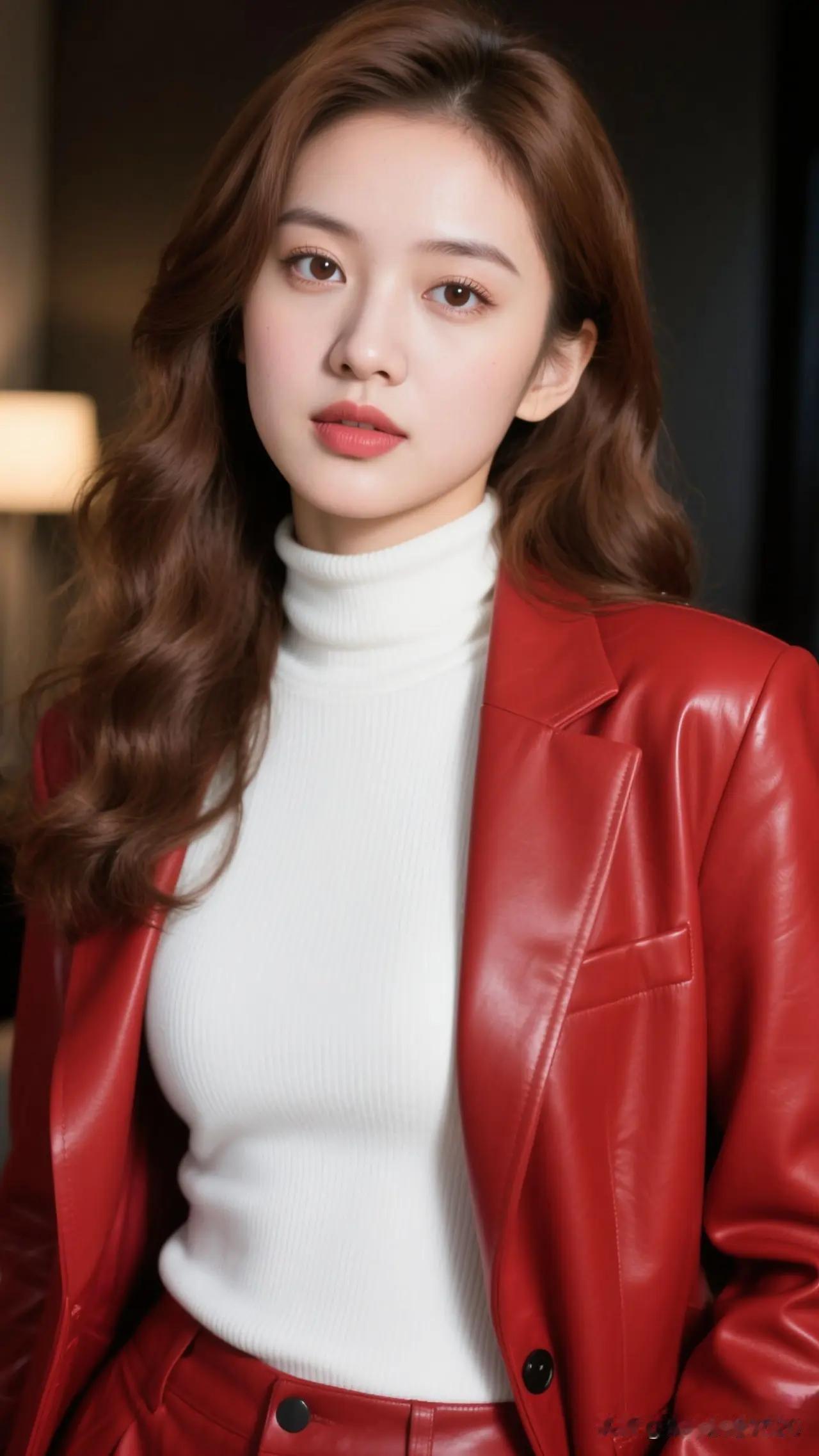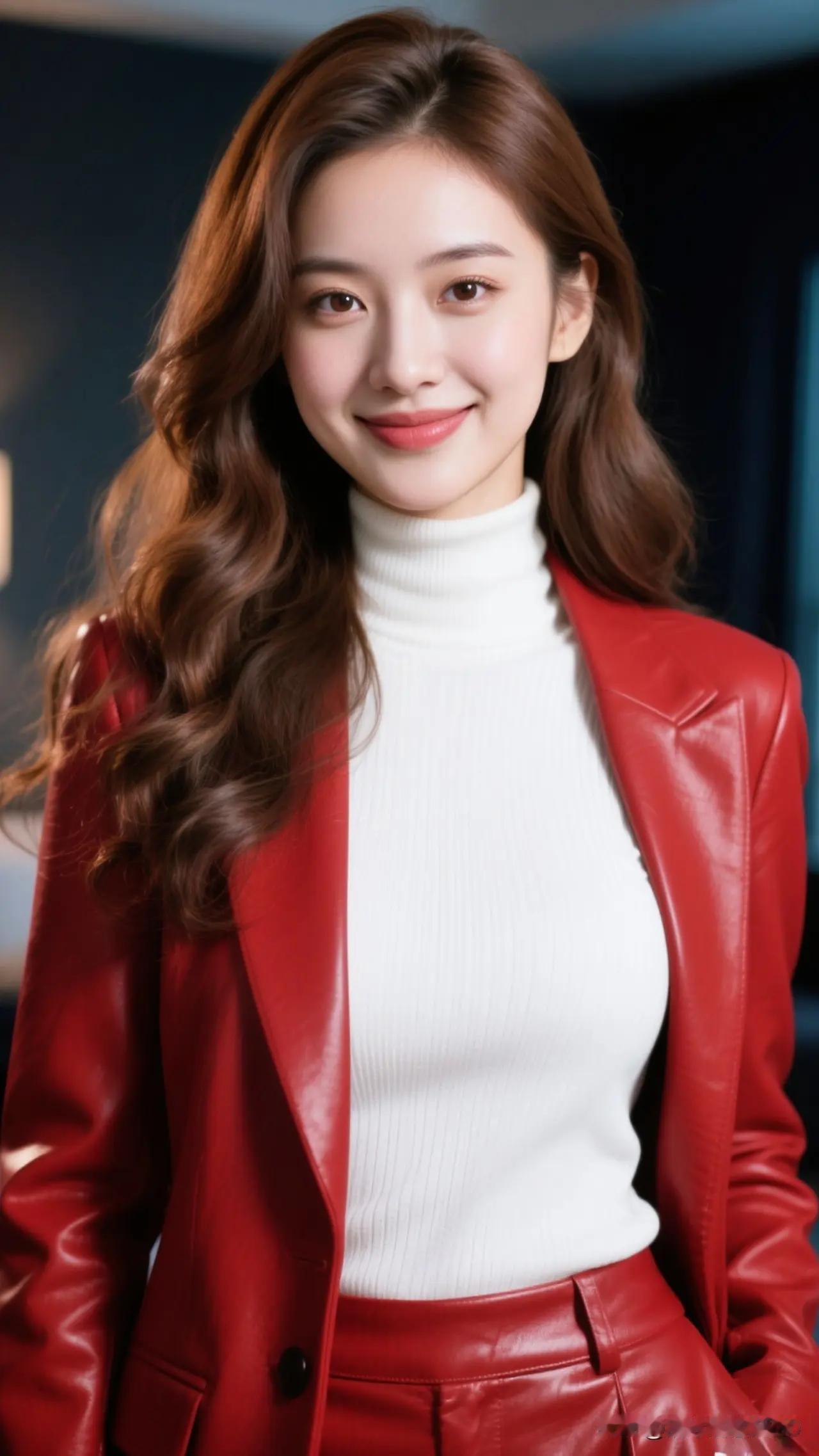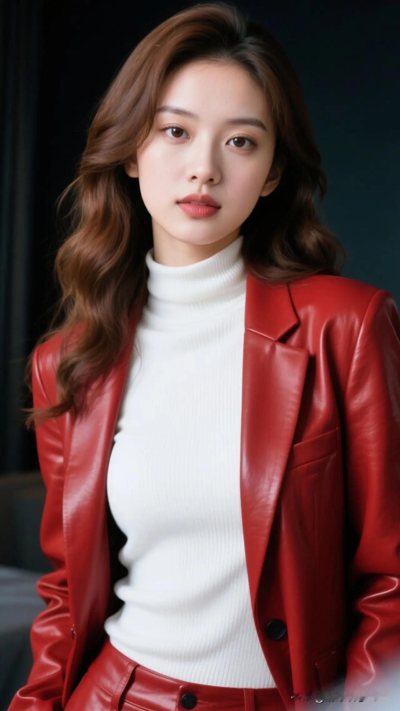 祝绪丹红唇黑裙明艳优雅活动写真