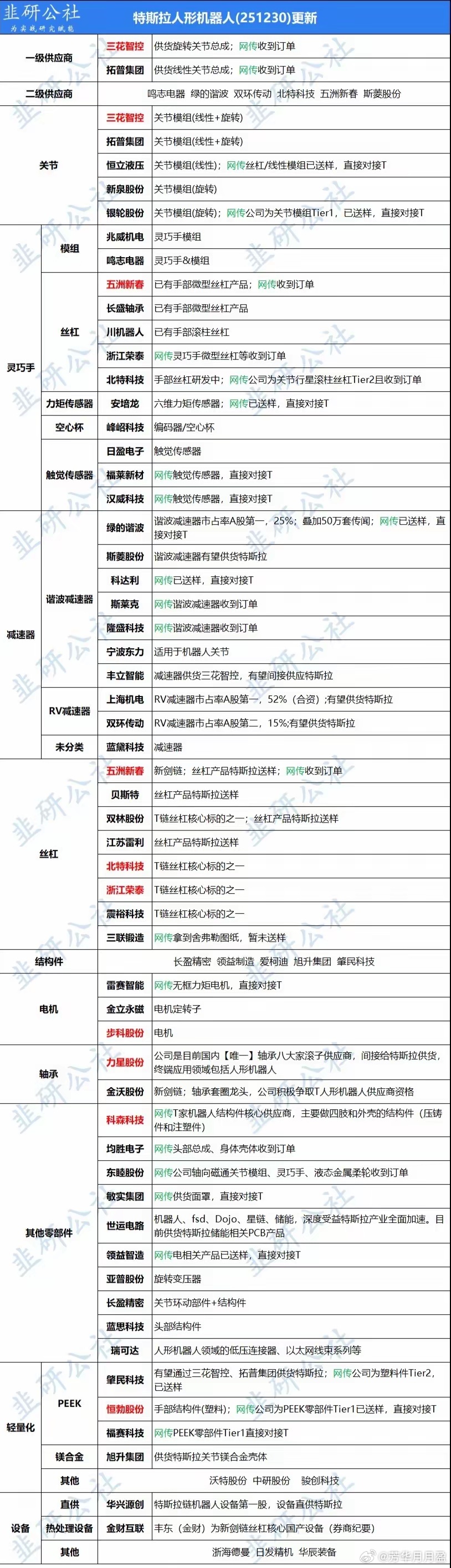 马斯克旗下机器人公司拟传出与7家A股上市公司合作,集体名单在下图中!