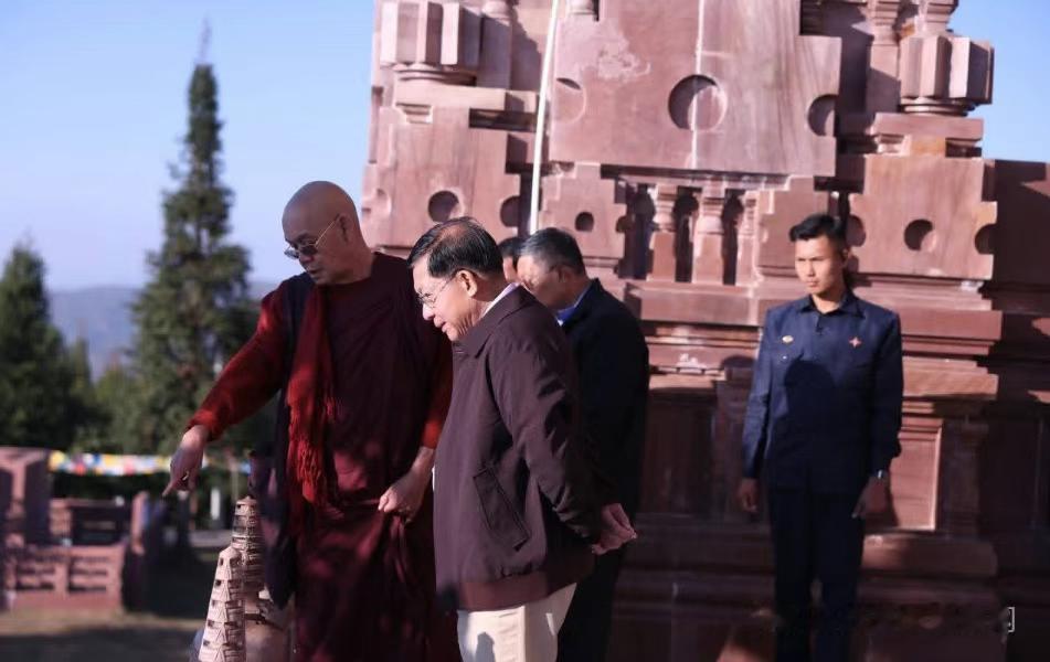 敏大将再次去景栋市视察! 敏大将名义上是视察寺庙,但实际上景栋市坐在的三角军区,也就是东部军区,是敏大将最不放心的。在缅甸内战当中,尤其是2023年的1027行动以后,缅甸三角军区一直处于风声鹤唳当中,尤其是三角军区将佤邦分为了北佤和南佤地区。 之前一度有传言说佤邦军队准备动手,占领三角军区的地盘,然后将南佤和北佤地区,彻底连为一片,但是遭到了佤邦方面的否认。最终事实证明,佤邦没有出兵,南佤和北佤还是没有能连起来在一起。 这个三角军区在整个缅甸内战中,暂时没有爆发大规模战斗,也没有太过混乱,还处于缅甸军政府的控制当中。就是因为各方势力过于复杂,谁都不敢率先动手,所以说也就维持了相对稳定。 景栋市是作为三角军区最重要的城市,必须要稳定。敏大将趁着去市场佛教和佛塔的过程,要继续稳三角军区的稳定,这是缅甸的大后方,要不然局面会很被动。