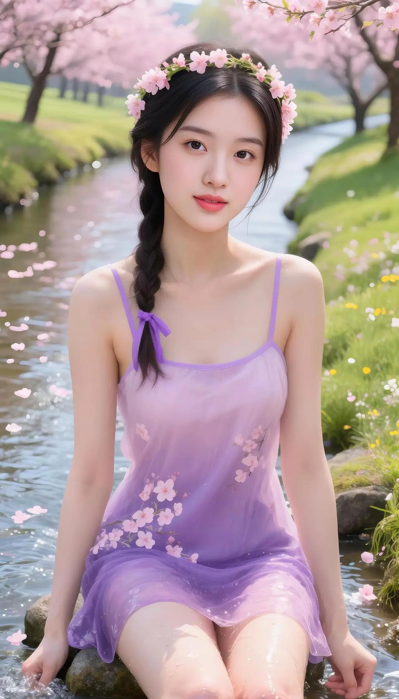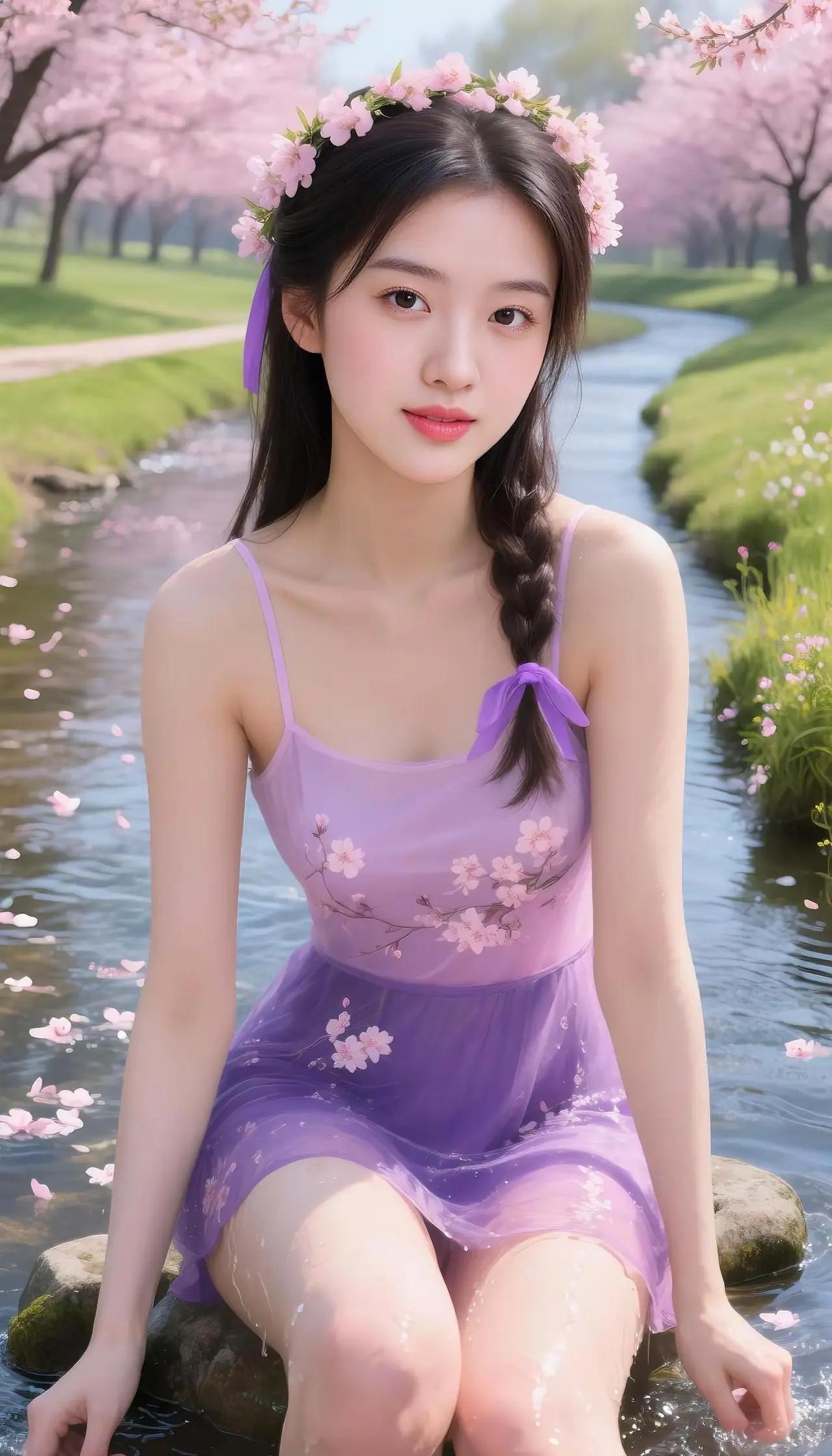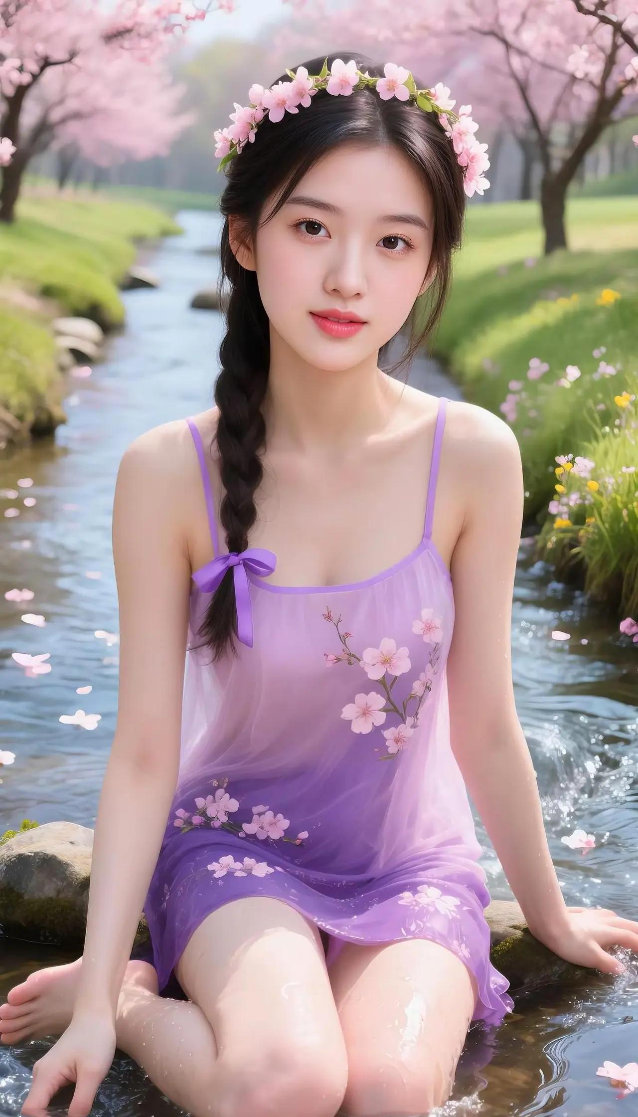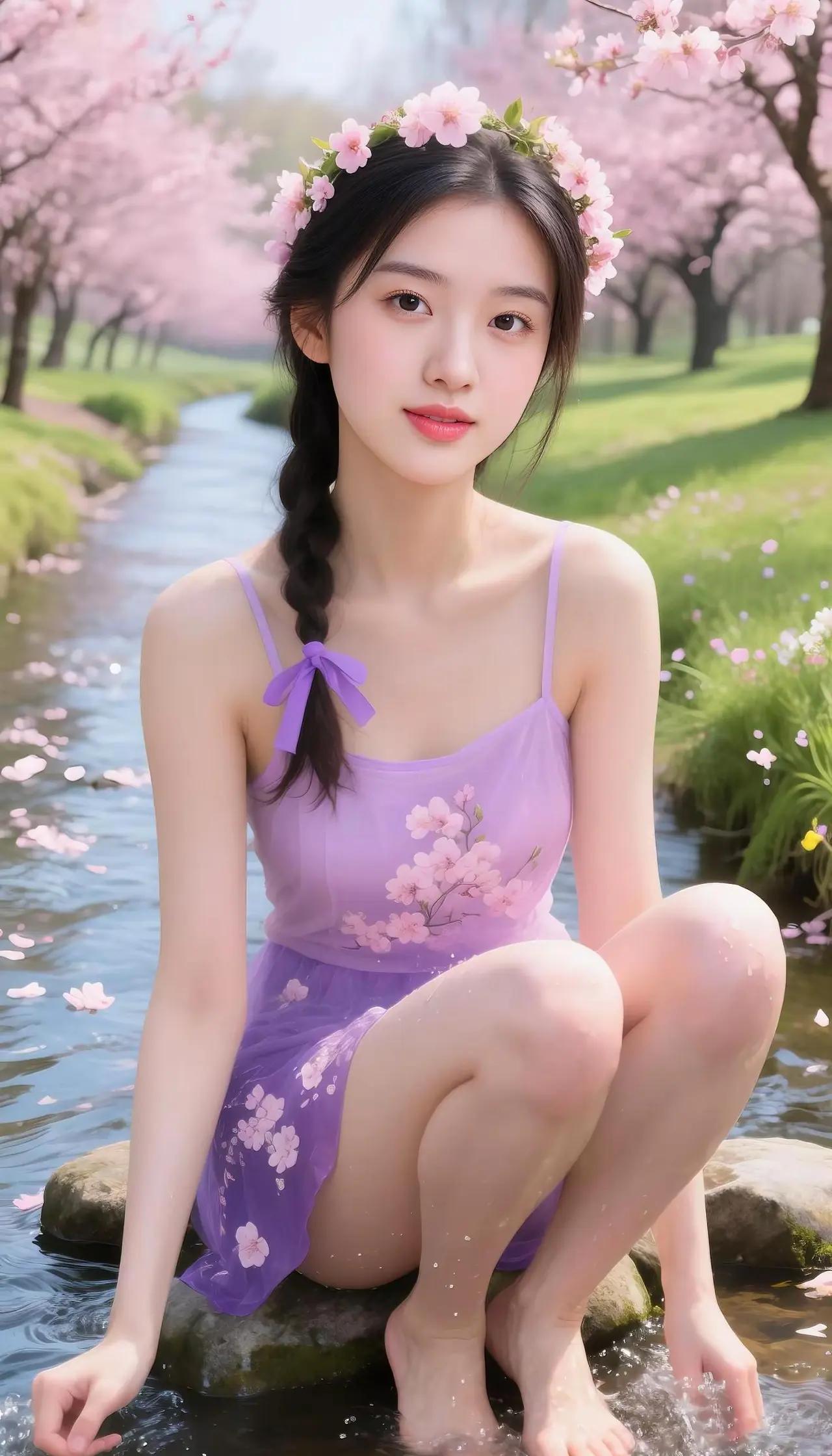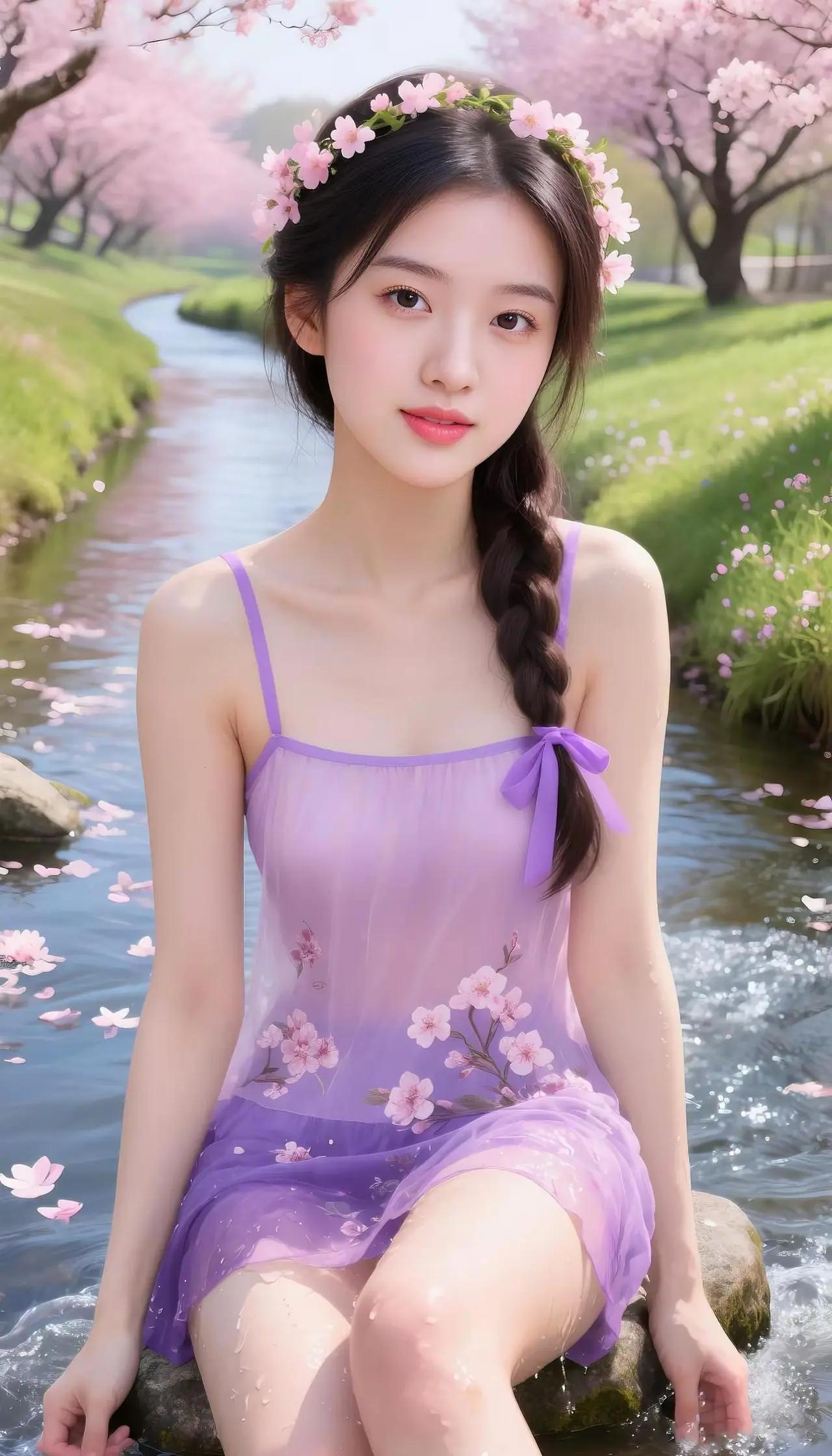 《烟雨天青》米白底布洇开墨色云团仿佛将西湖的雨雾织进旗袍的纹路里斜襟