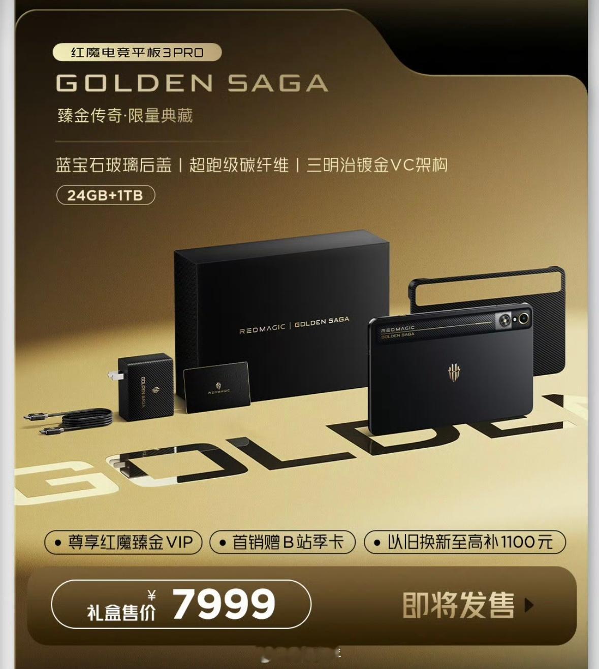 红魔11 Air价格12+256G 3499,国补299916+512G 4199,国补3699红魔电竞平板3PRO GOLDEN SAGA臻金传奇•限量典藏:24+1T 7999红魔11 PRO+ GOLDEN SAGA臻金传奇⋅风生水起:24+1T 9899新机来了