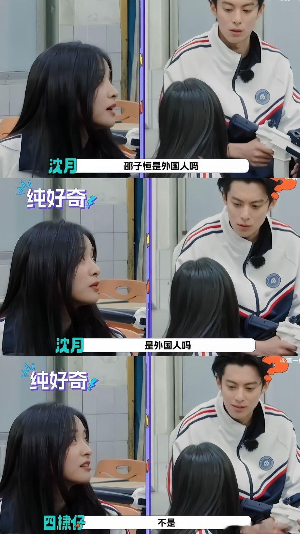 好像邵子恒十几岁就去韩国当练习生了,韩语英语说的都挺流利,反而中文有点串味儿了确实玩游戏这个弟弟有点融不进去~是因为不了解国内的一些事情吧,感觉上网也少,所以很多时候他都一脸迷茫,也没有积极答题,大家就都调侃他,沈月以为他是外国人真的不懂题目意思,就问了一嘴王鹤棣,一点恶意都没有,我突然听到这句话也觉得很搞笑!沈月 邵子恒是外国人吗