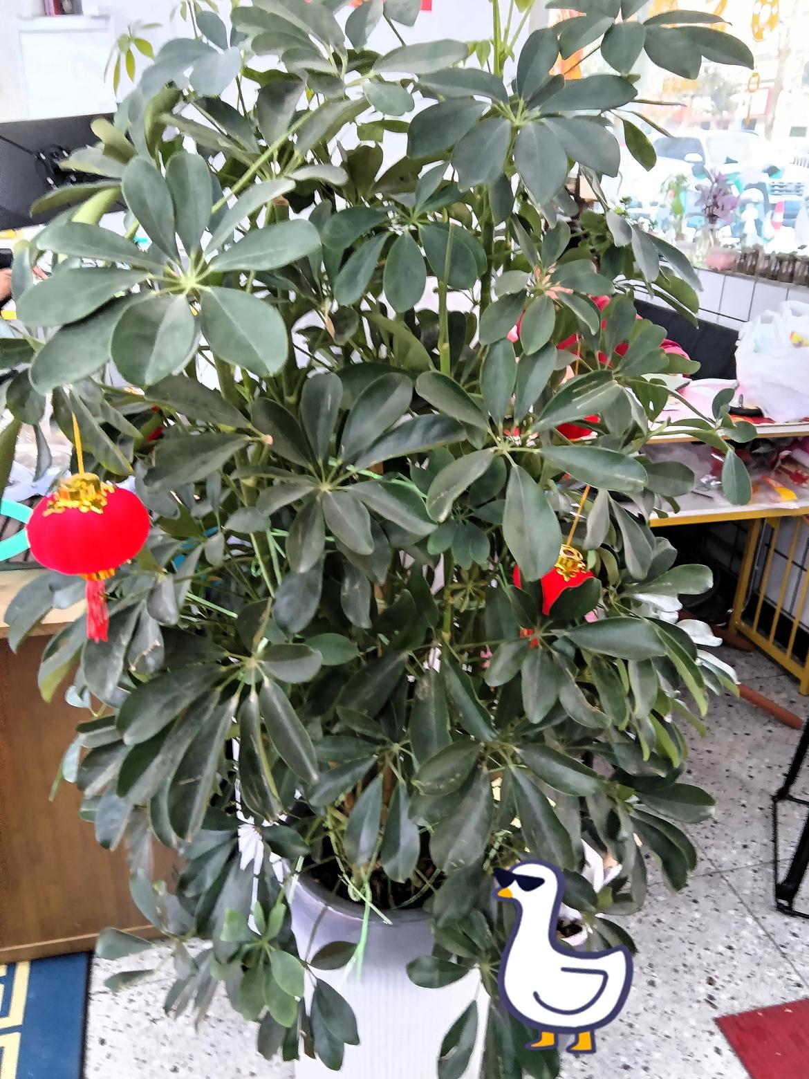 一进办公室就被这盆“大家伙”吸引住了!这是大家常说的“八方来财”,也叫鸭脚木。你看它的叶子一丛丛向外舒展,就像张开的小手,正把四面八方的好运往怀里揽。 过年了,同事特意给它挂了俩小红灯笼,红配绿的搭配看着就喜庆,往工位旁一放,不光空气清新了,连带着一整天的心情都跟着亮堂起来。它也是出了名的省心,平时浇浇水就能疯长,简直是懒人福音。 你们办公室都摆了什么绿植?有没有比这盆更会“招财”的?评论区来唠唠呗!