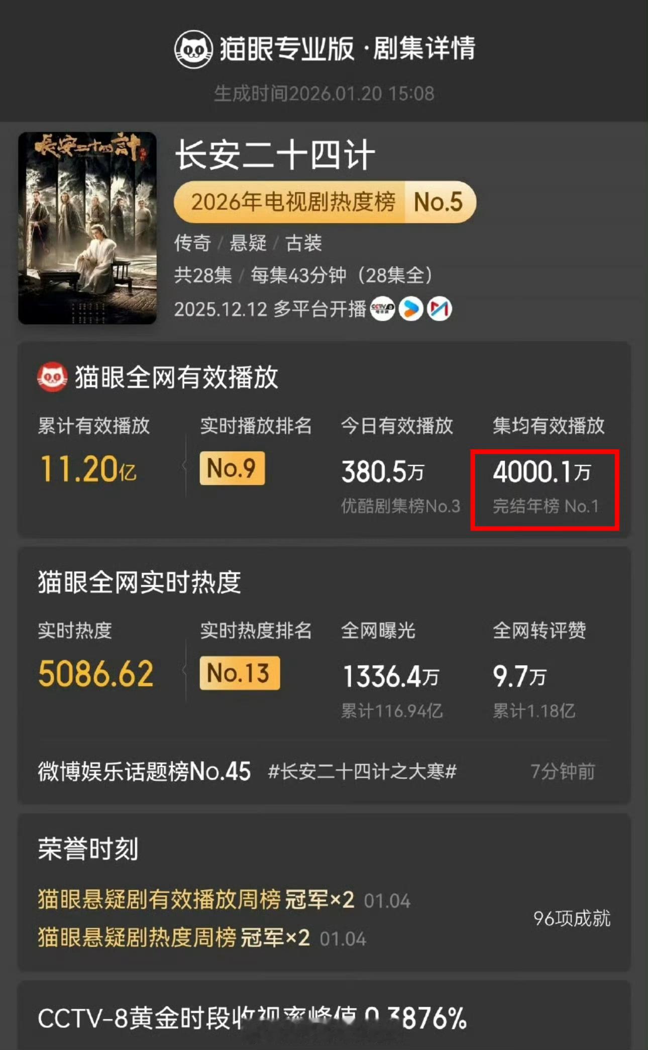 长安二十四计集均有效播放量破4000万恭喜《长安二十四计》集均有效播放量破4000万,成毅牛牛的很安心!长安二十四计集均破4000万长安二十四计集均有效播放破4000万
