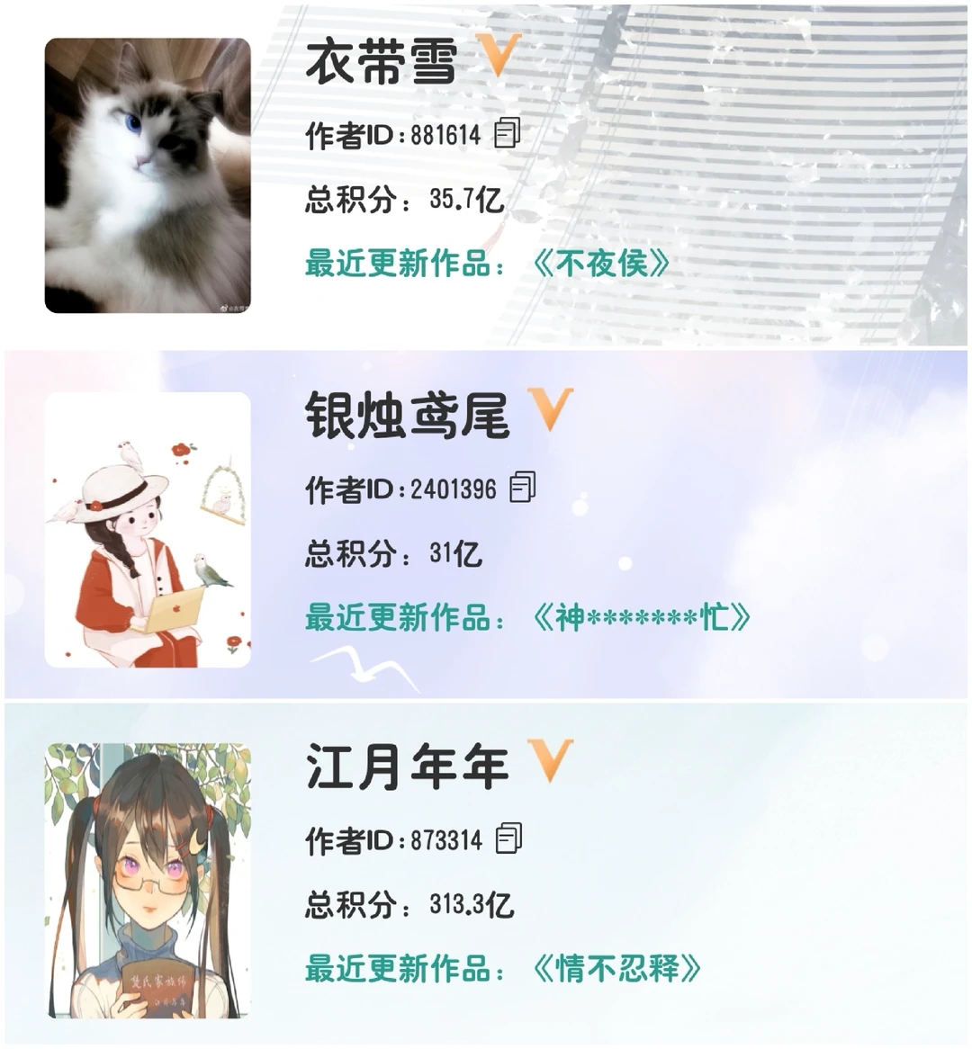 经典老牌作者,只写女强文,但是很久没开新书了