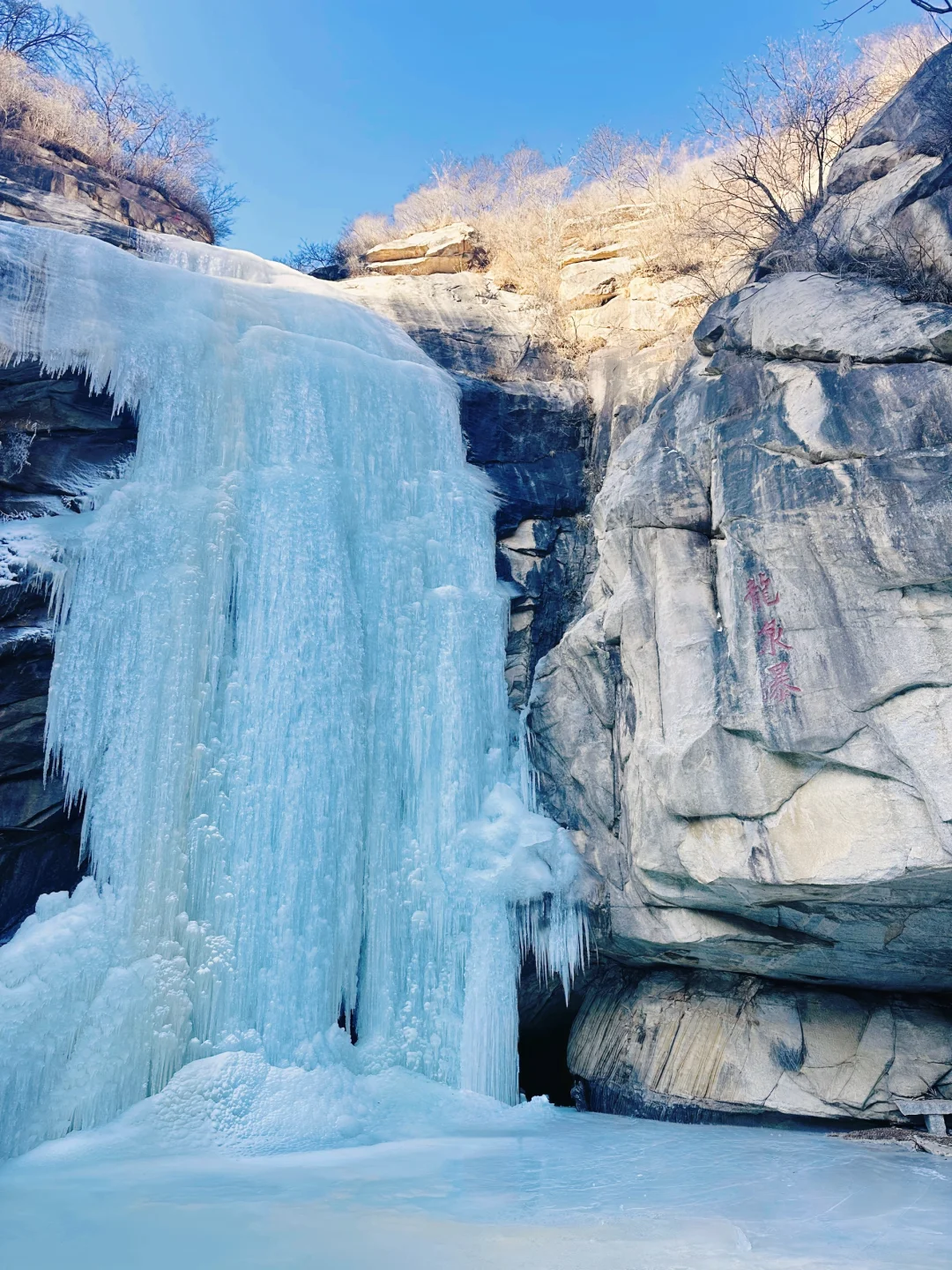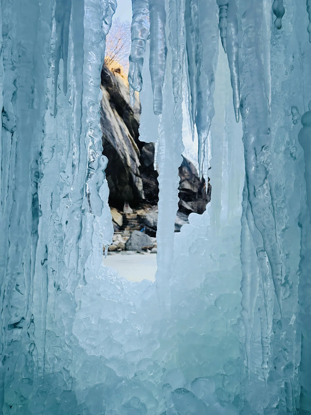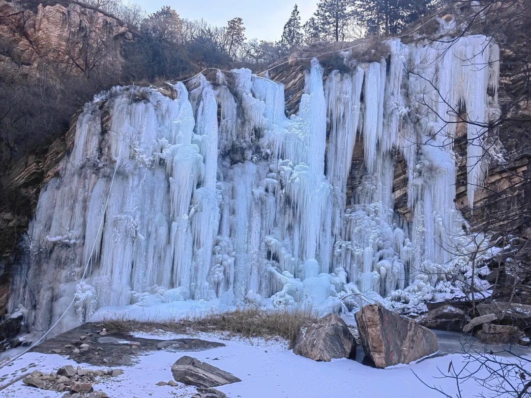 👉 谁懂啊!京郊藏着这样的冬日秘境🌨️ 上周和朋友冲了「桃源仙谷」,直接被蓝冰+冰瀑洞美到失语🤫 冰封的瀑布像千万支水晶竖琴🎻 阳光洒下来blingbling的,手机原相机直出都像加了滤镜✨