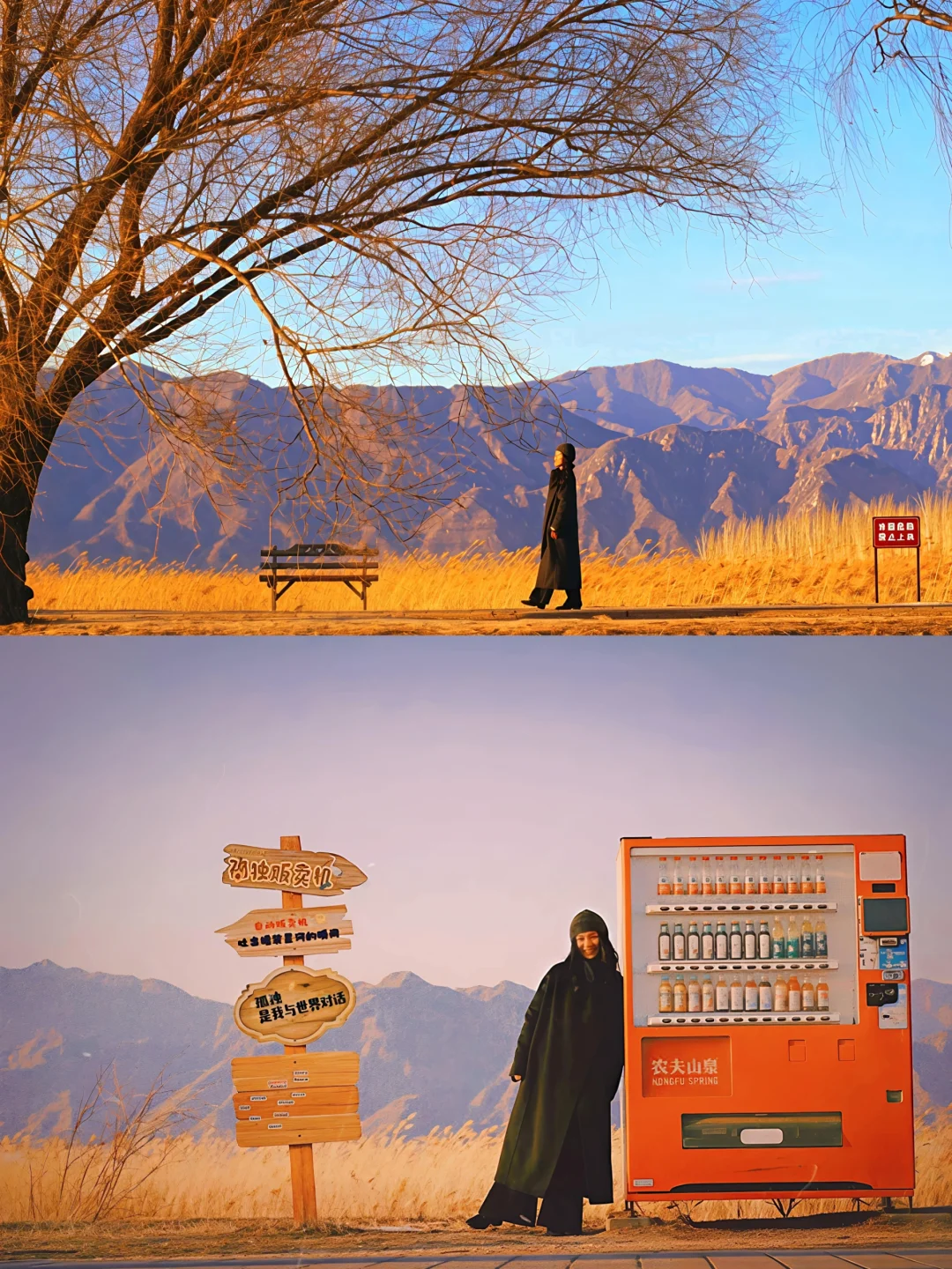 - 孤独长椅🪑:远山+落叶+散步的人影,随手一拍都是电影感,社恐也能轻松出片