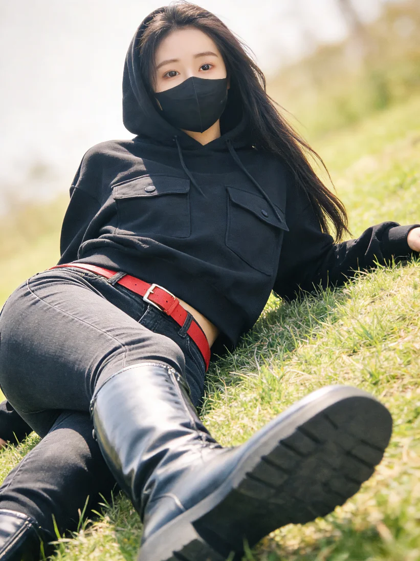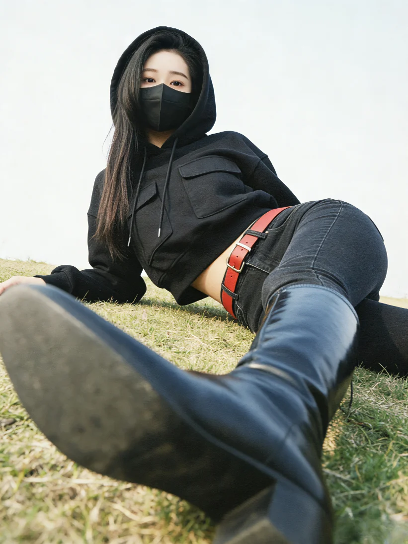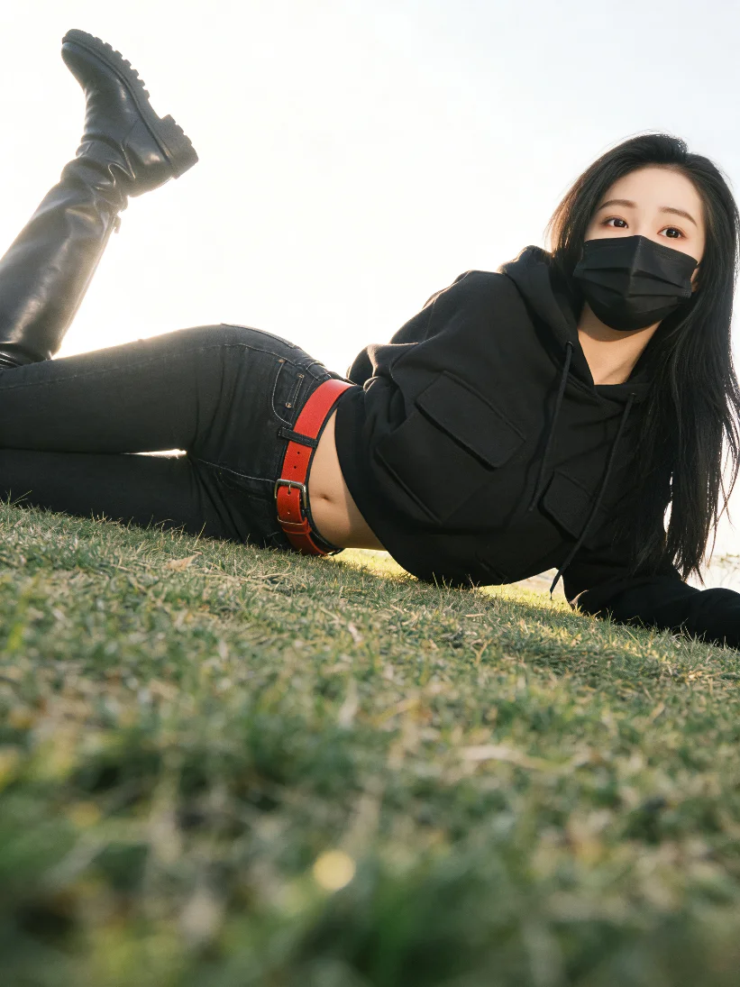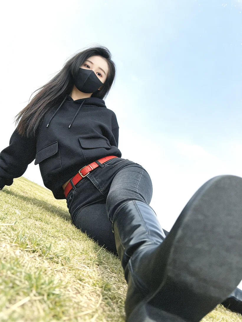姐妹们!今天分享一个在机场候车室随手拍出大片感的“沙发瘫”神姿势!🔥 最近赶飞机在候车室发现个宝藏操作——皮沙发+叠腿侧躺,直接把慵懒感拉满!低角度仰拍超显腿长,连靴子的线条都变成时尚利器,配上黑色口罩氛围感直接拿捏~😎 这套look我超爱!黑色连帽卫衣露腰设计显瘦又辣妹,红色腰带一搭瞬间跳出沉闷感,再踩双长靴,又酷又随性~重点是!姿势要松垮但不垮,全身放松但腰背悄悄发力,慵懒中带点漫不经心,出片率直接翻倍!📸
