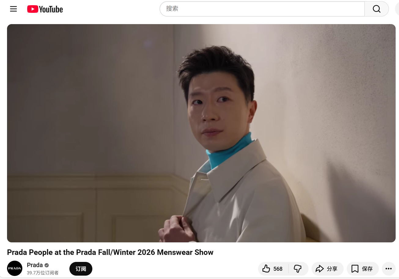 prada代言人马龙Prada油管更新~