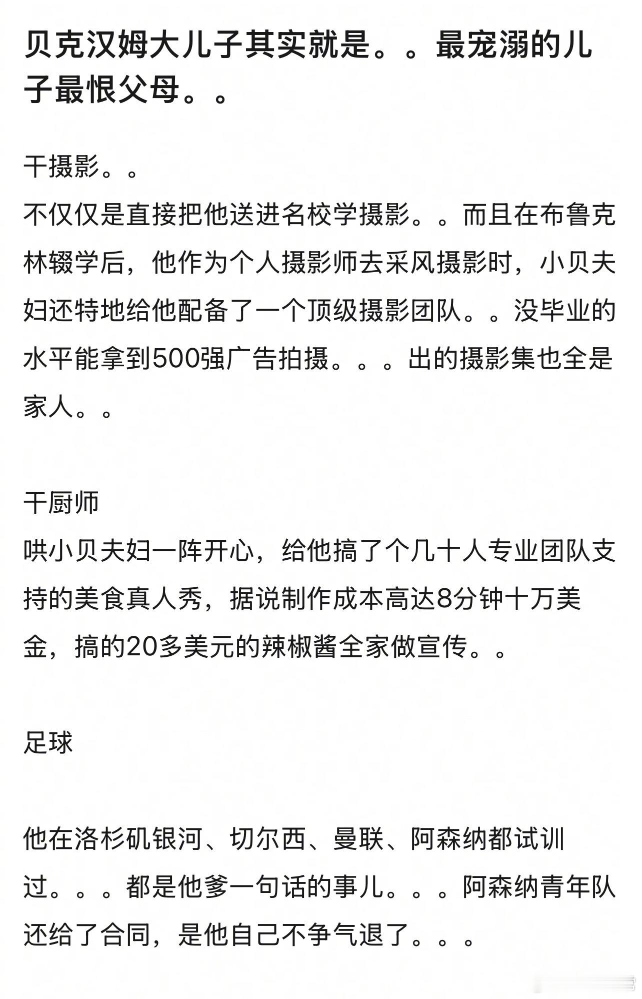 贝克汉姆和维多利亚的大儿子布鲁克林就是典型的升米恩斗米仇贝克汉姆长子称婚礼是最屈