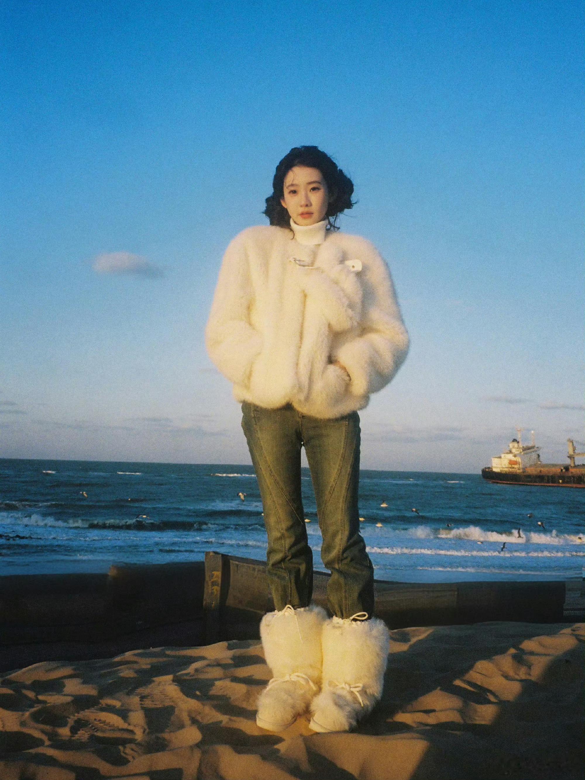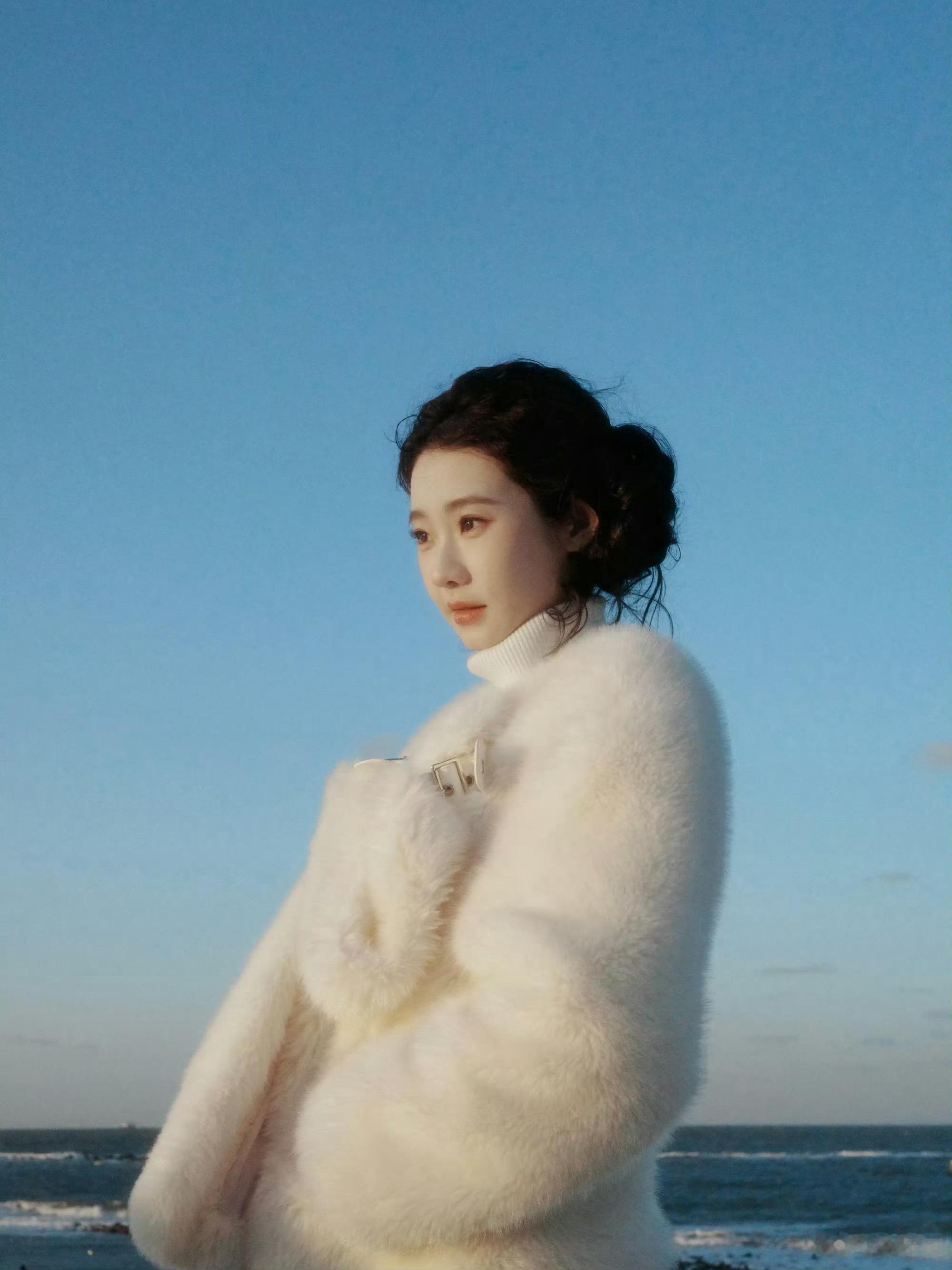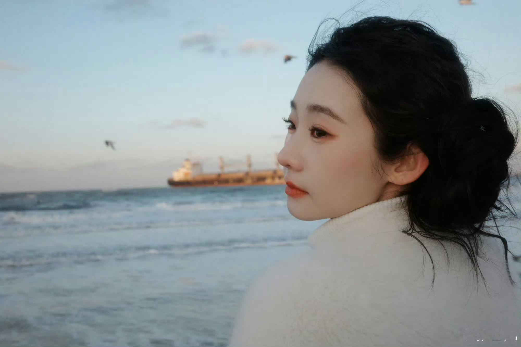 张艺凡咋萌成萨摩耶了海边氛围感照片来袭!这个张艺凡萌成啥了比例也太逆天了,艺凡你是只可可爱爱的毛绒小兔子