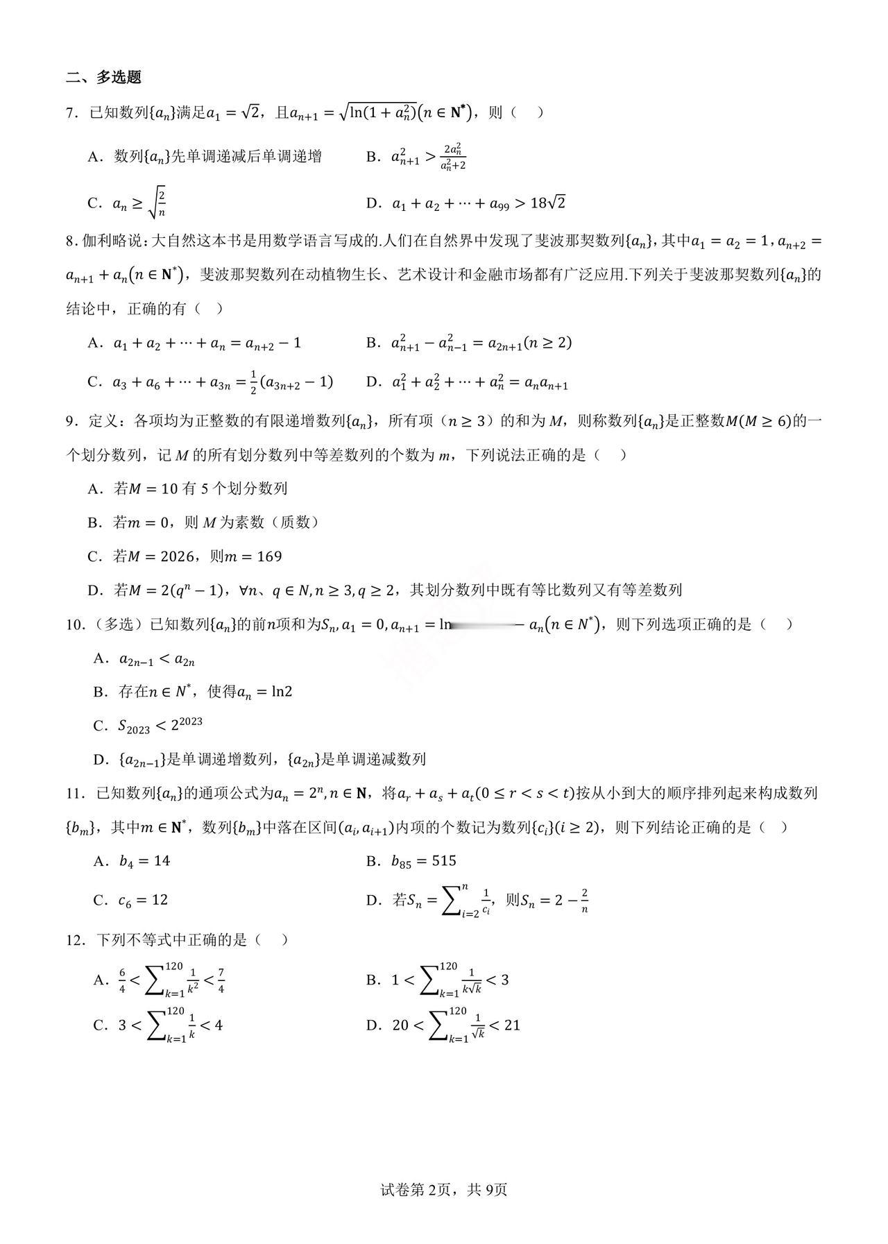 大家呼声很高的🔥 部分期末卡住的 数列压轴来啦✍️ 378 题选 40 题 数列几乎可与高中任何板块结合 向量,函数,概率,解析几何, 复数,导数,立体几何… 所有往往学生不会数列 往往不是单纯的数列问题 此次选题不仅囊括数列放缩难点,还精选了高考已经考察过,具有代表性的数列与导数(2022 新 2 卷),数列与概率(2025 新 2 卷),数列与圆锥曲线(2024 年新 2 卷)等题目,24 年 1 卷类型在前面已经做专题。高中数学